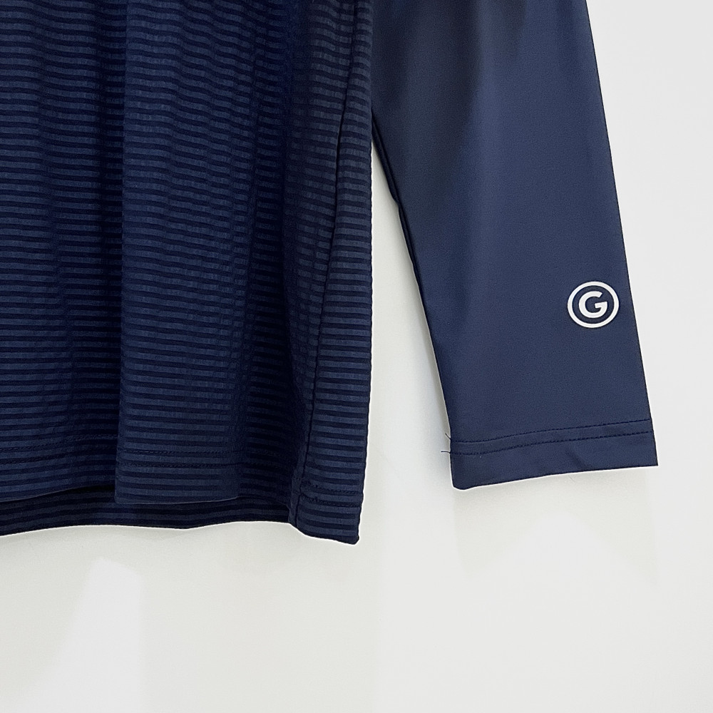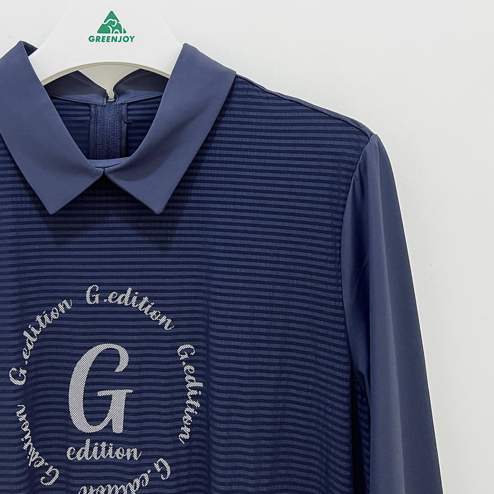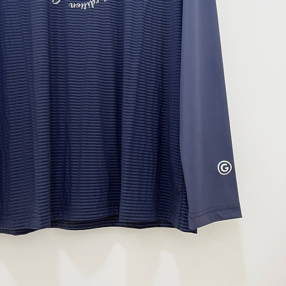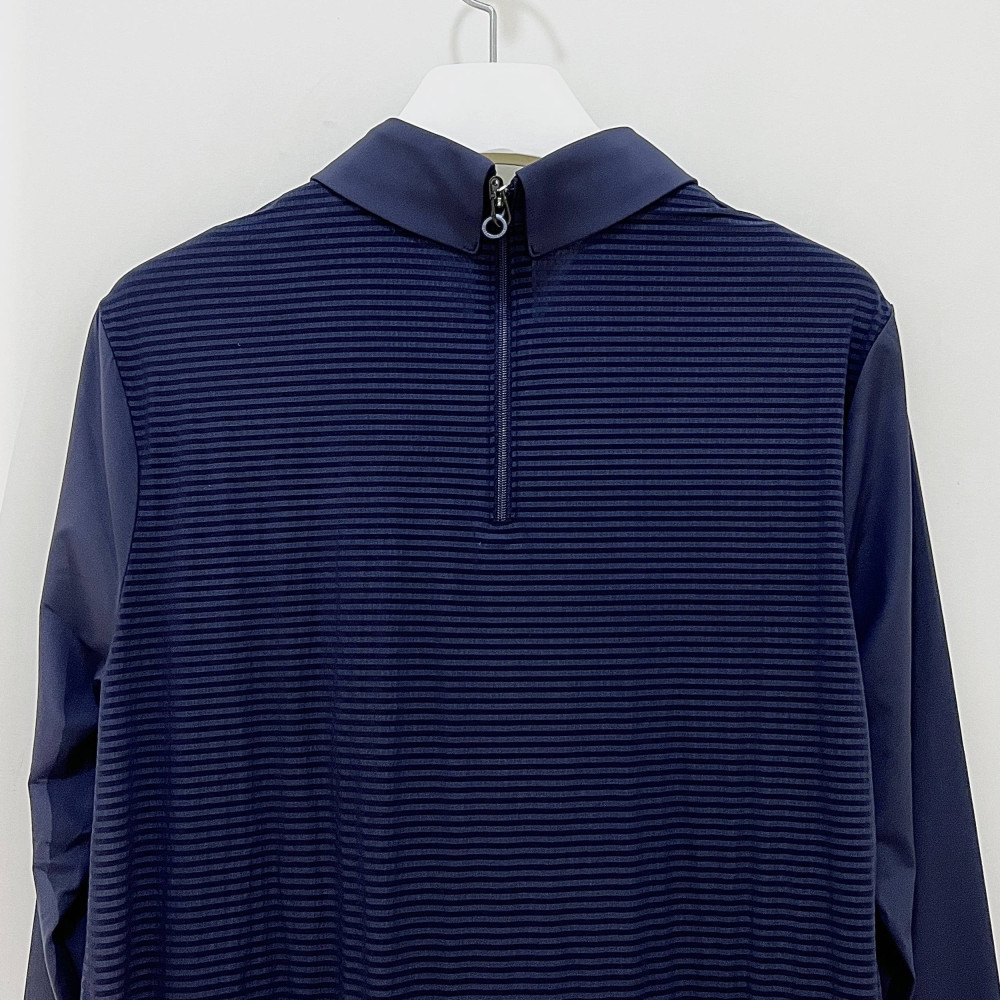 몸판 부분에 은은하게 스트라이프 패턴이 더해진 메쉬 소재 배색으로 포인트를 준 긴팔 카라 PK 티셔츠입니다. 가볍고 시원하게 착용하기 좋습니다.