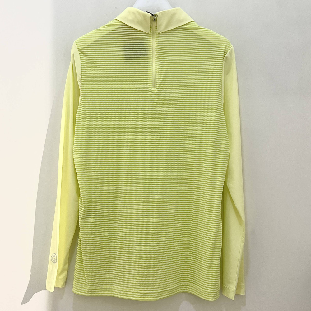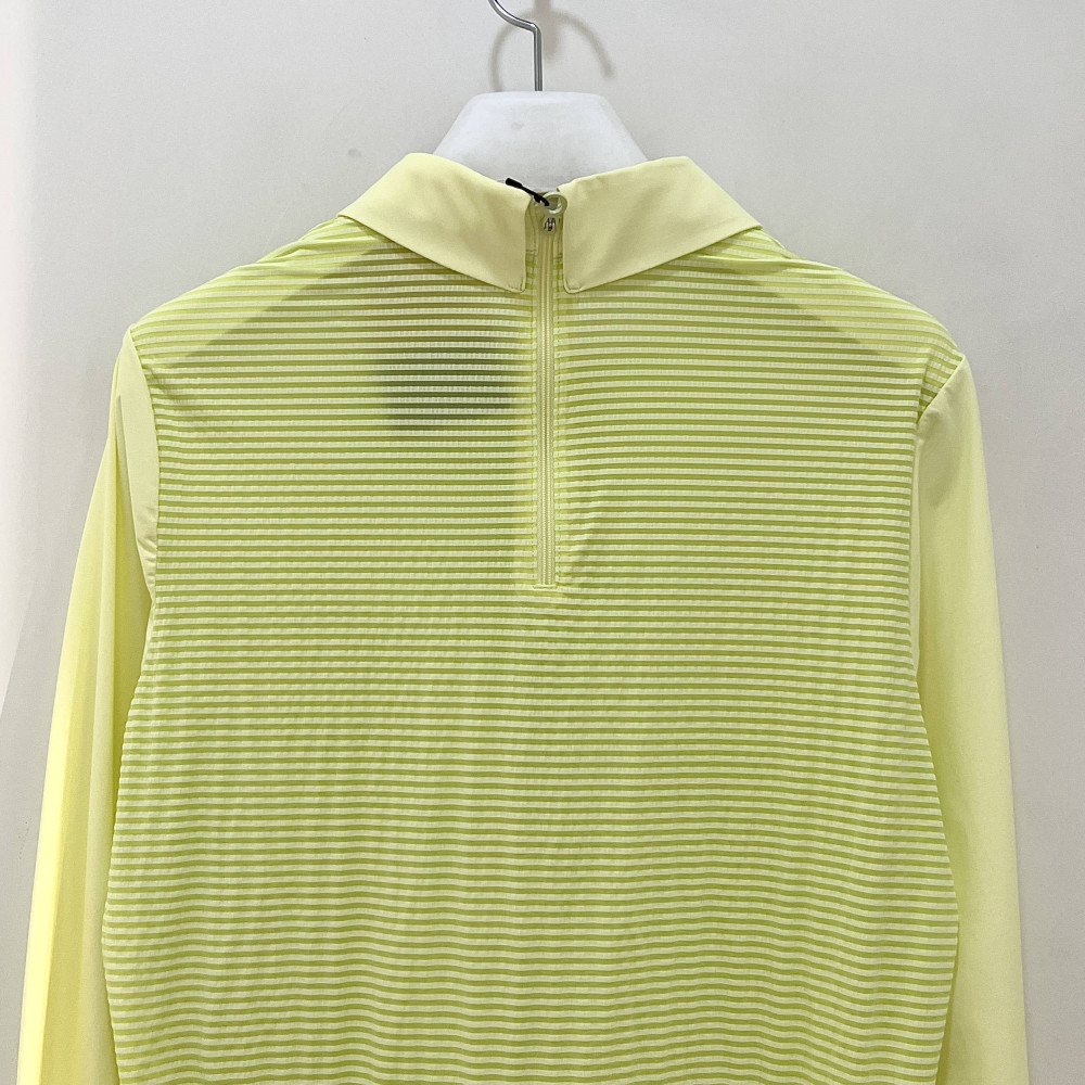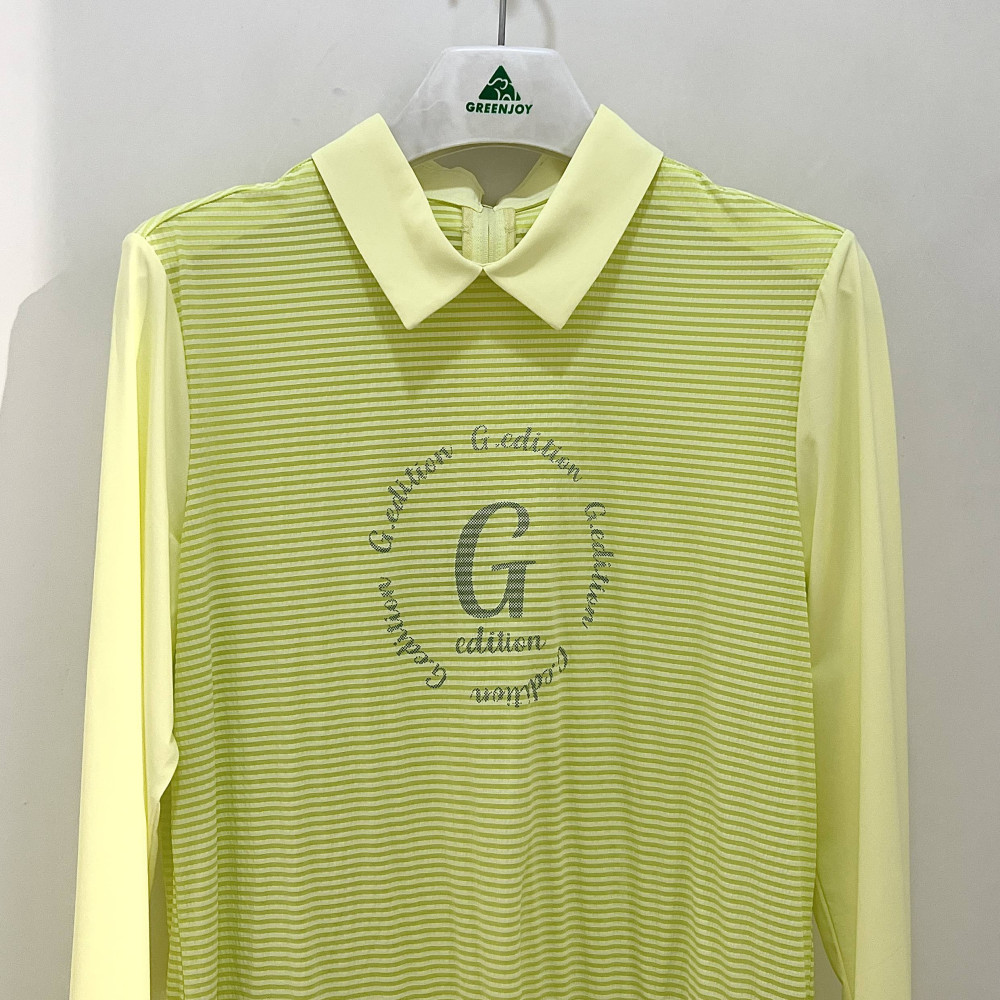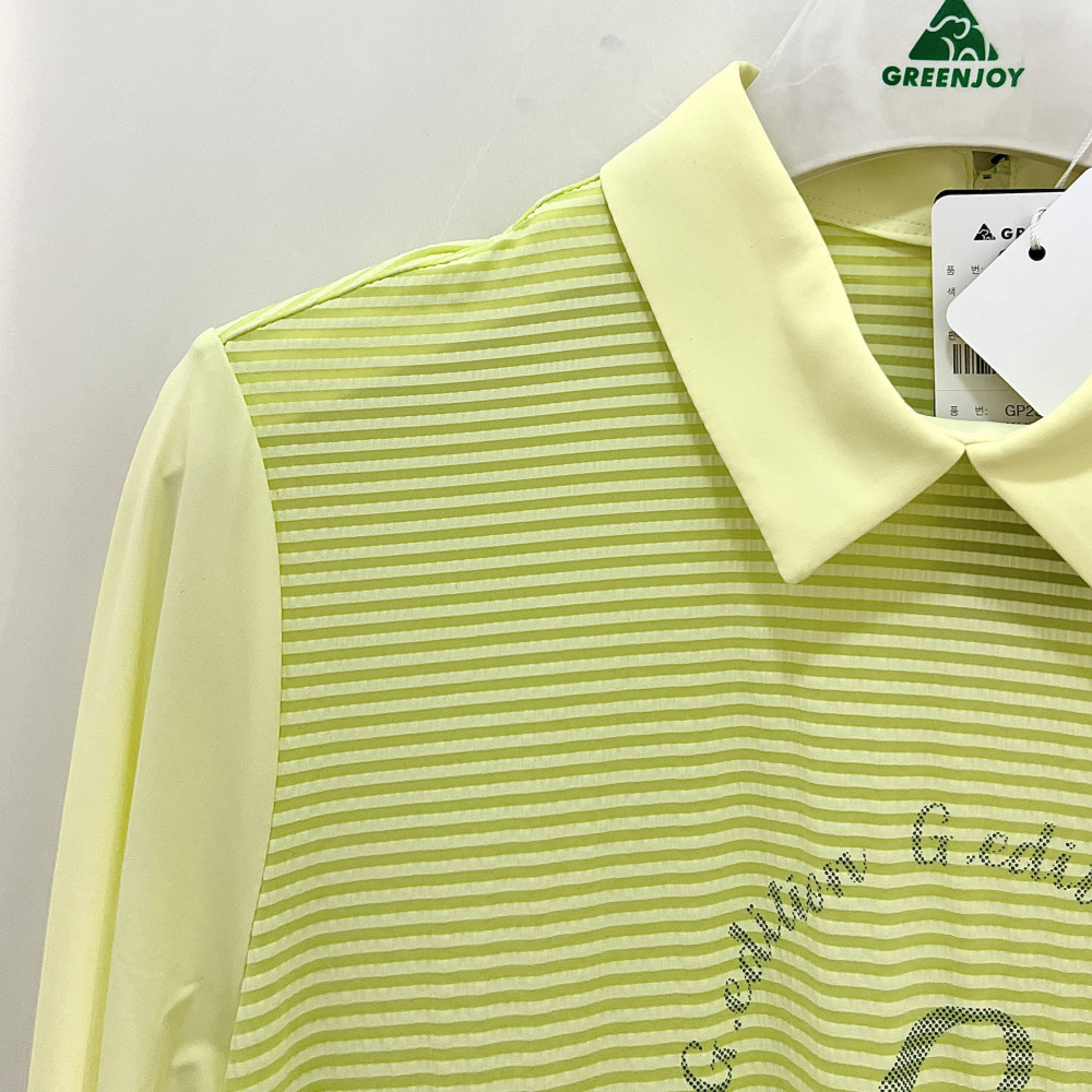 몸판 부분에 은은하게 스트라이프 패턴이 더해진 메쉬 소재 배색으로 포인트를 준 긴팔 카라 PK 티셔츠입니다. 가볍고 시원하게 착용하기 좋습니다.