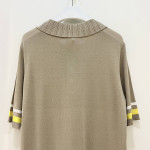 플리츠 카라로 포인트를 더해준 반팔 카라 니트 티셔츠입니다.