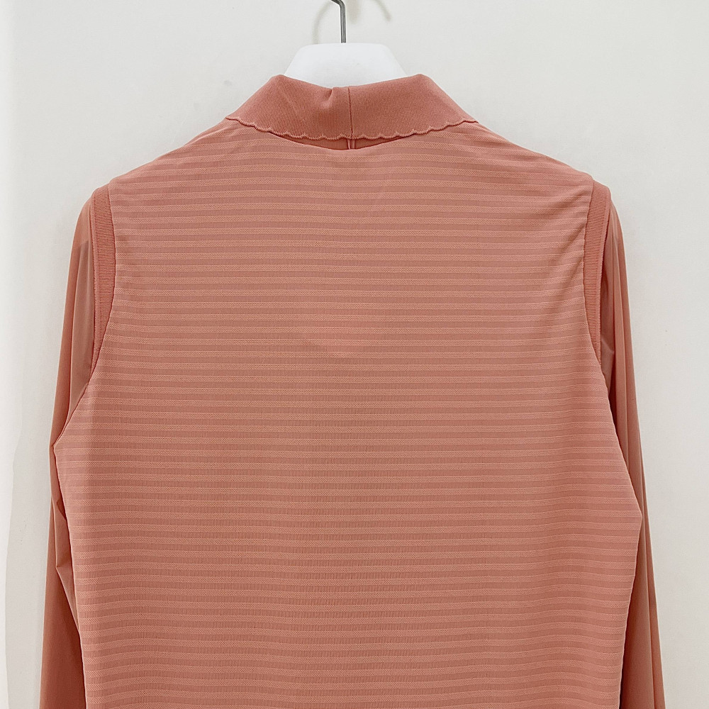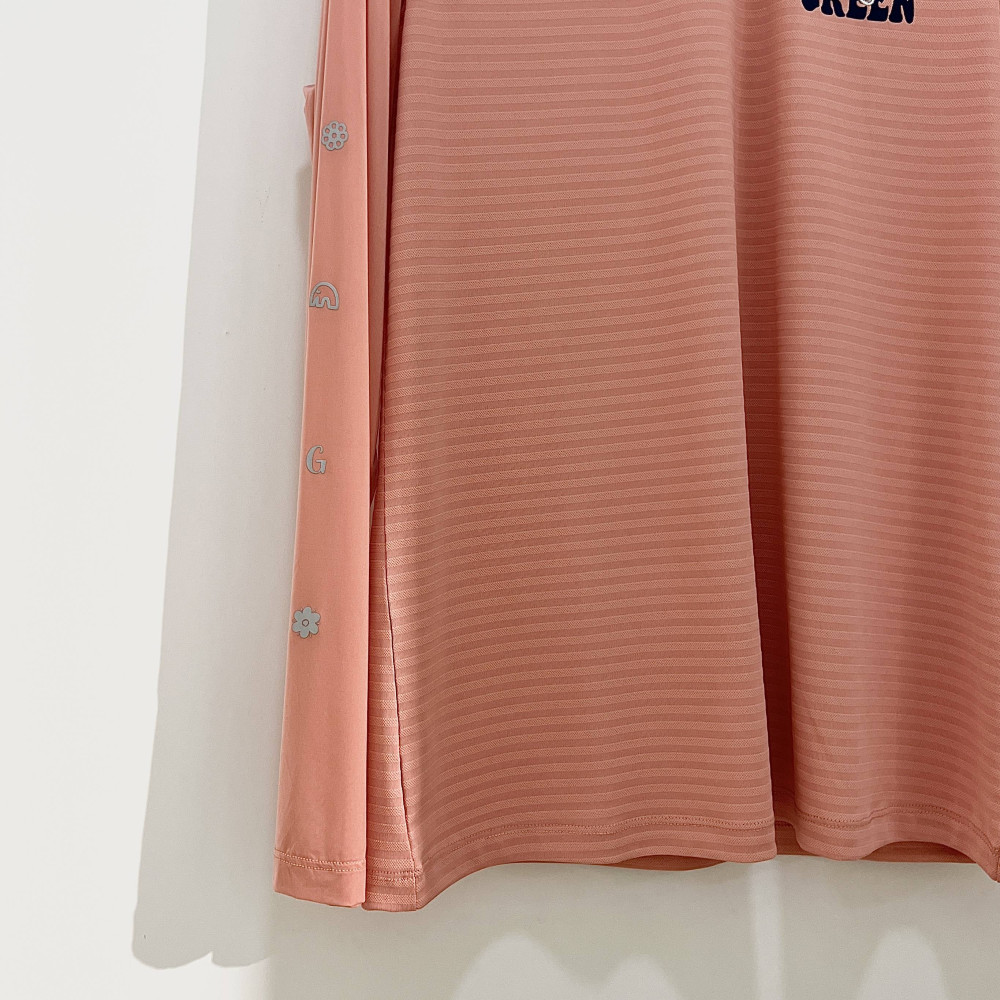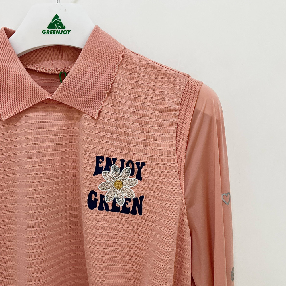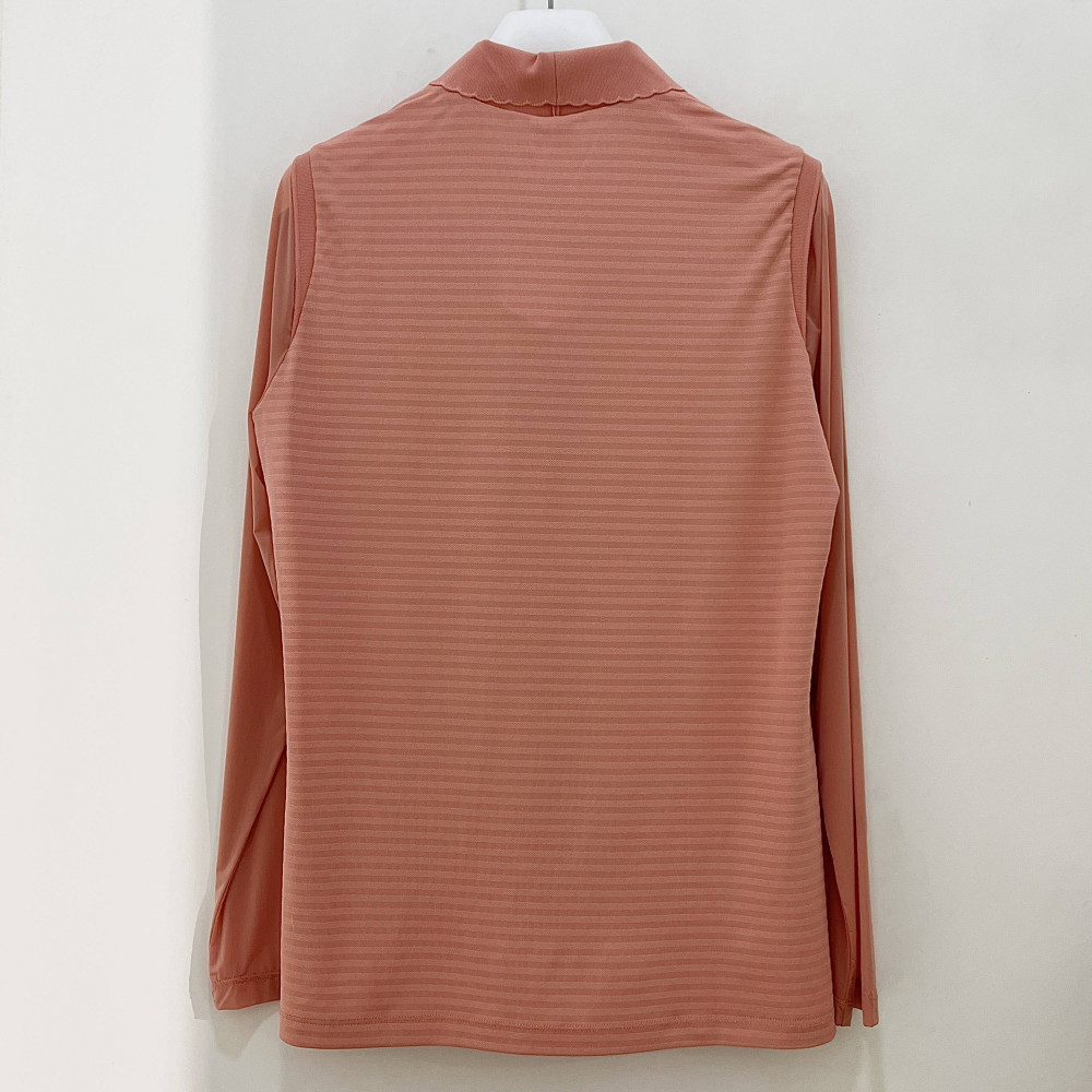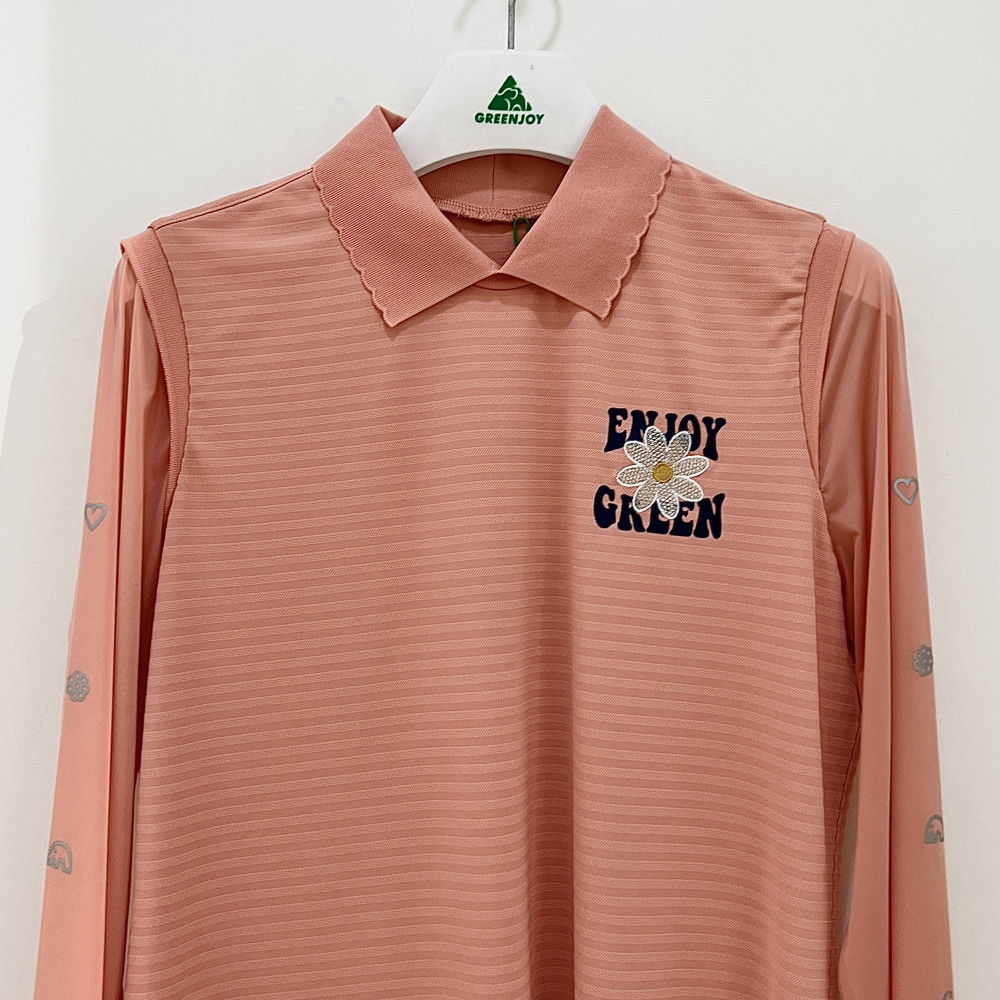 자외선 차단과 냉감 효과가 있는 기능성 소재로 만들어진 여성 긴팔 카라 티셔츠입니다. 여름 시즌에 가볍고 시원하게 착용하기 좋습니다.