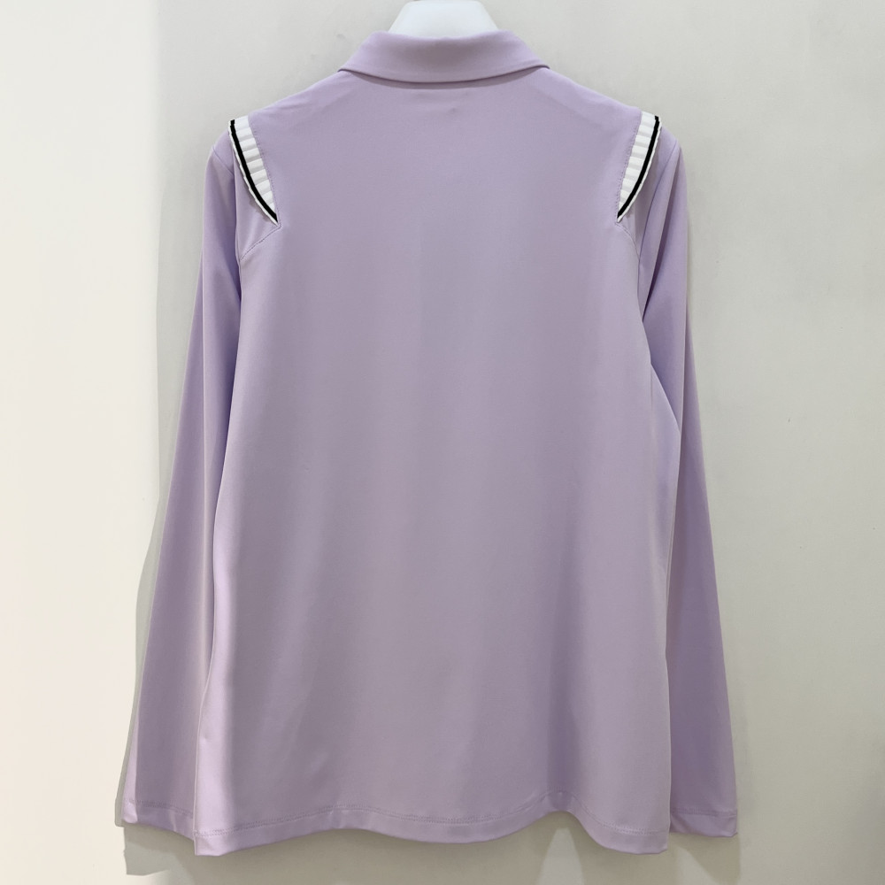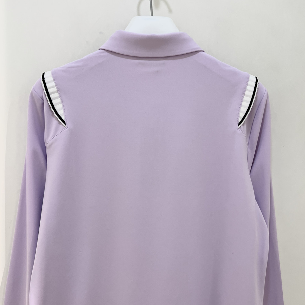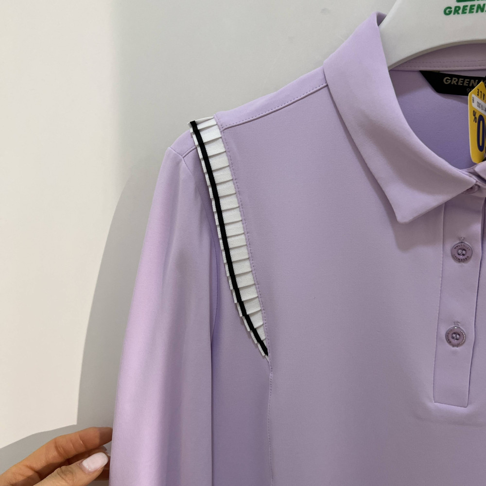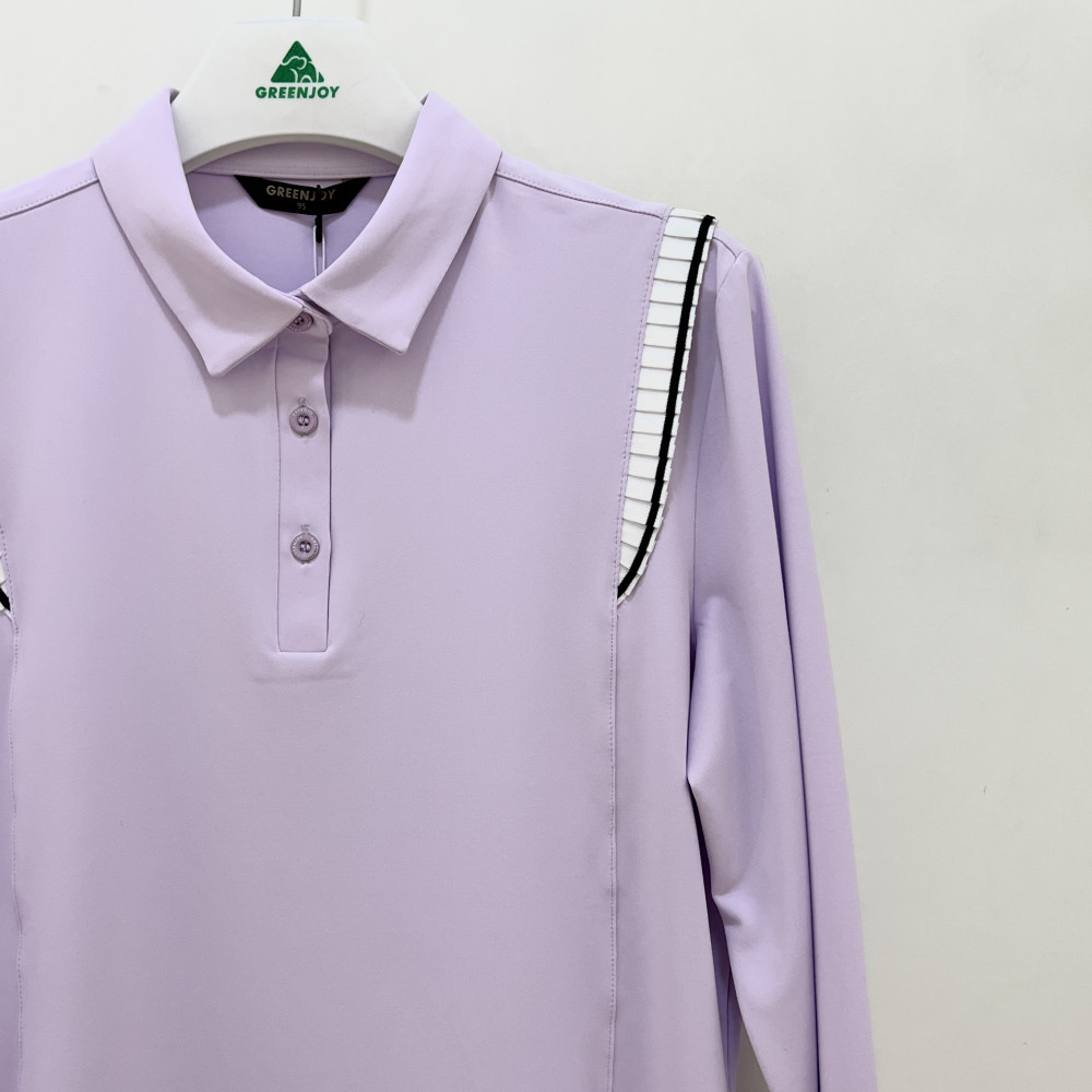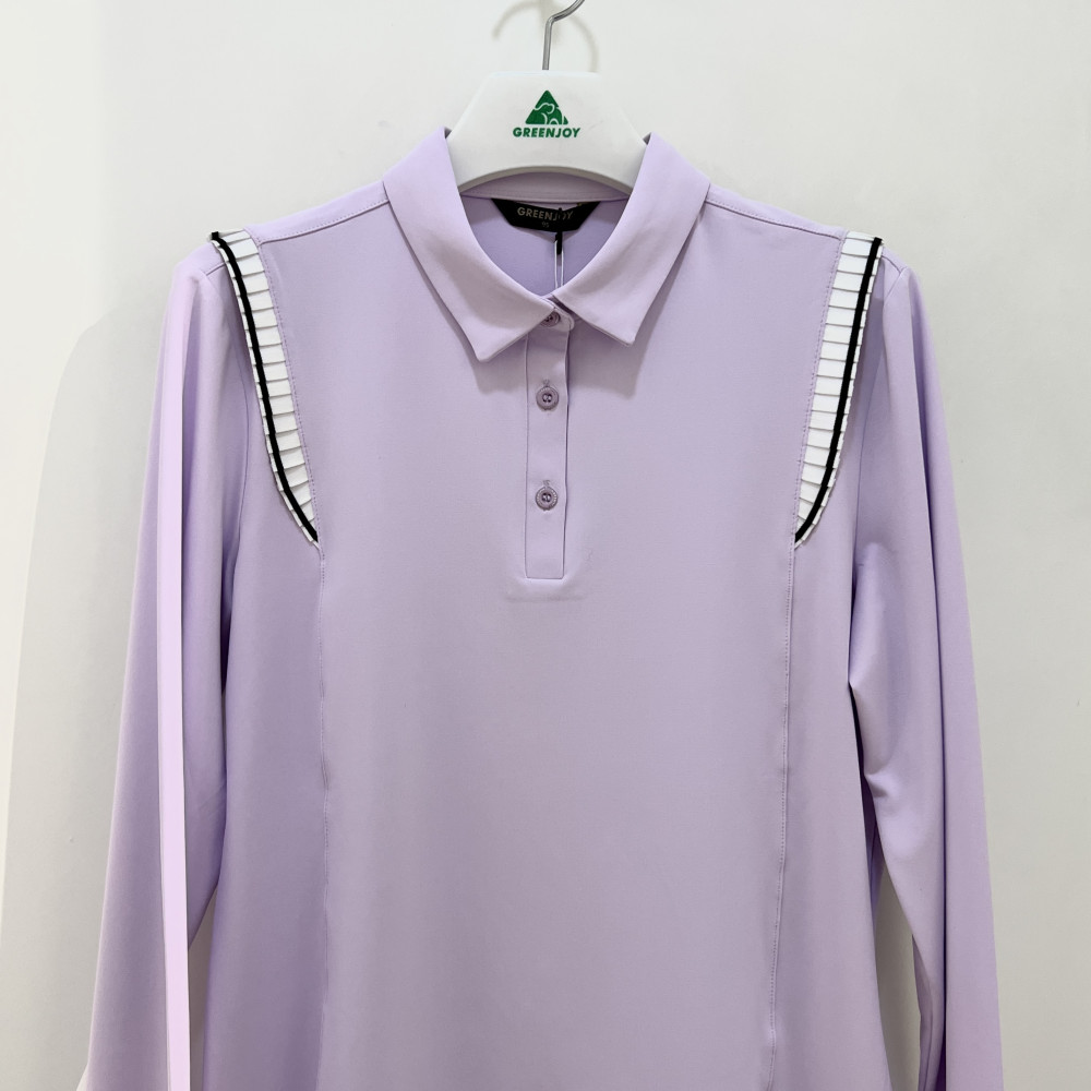 숄더 라인에 플리츠 포인트를 더해준 여성 긴팔 카라 PK 티셔츠입니다.