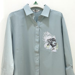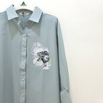 한쪽 가슴 부분에 플라워 프린트를 포인트로 더해즌 여성 루즈핏 셔츠입니다. 깔끔하고 세련된 느낌으로 멋스럽게 착용하기 좋습니다.