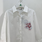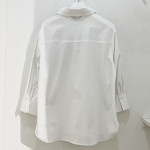 한쪽 가슴 부분에 플라워 프린트를 포인트로 더해즌 여성 루즈핏 셔츠입니다. 깔끔하고 세련된 느낌으로 멋스럽게 착용하기 좋습니다.