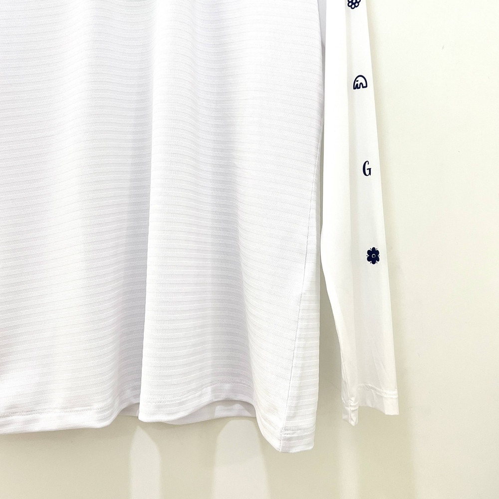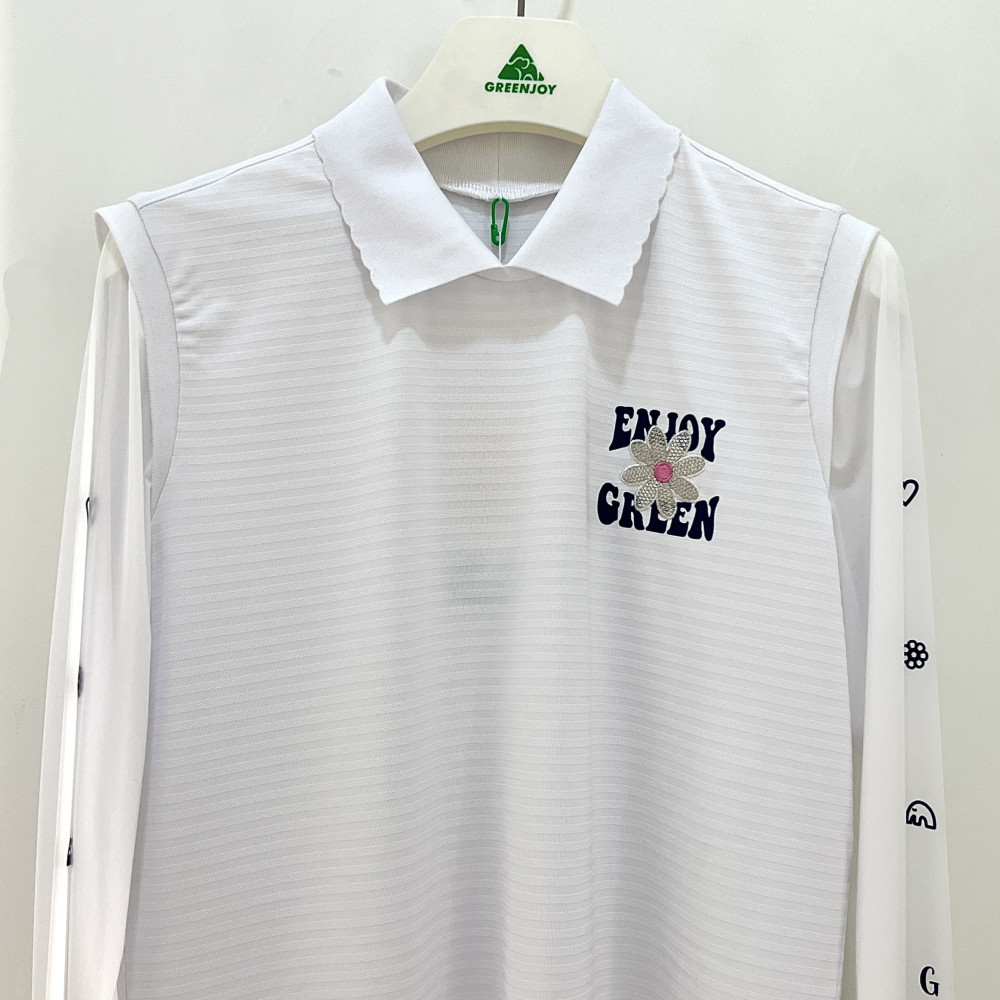 자외선 차단과 냉감 효과가 있는 기능성 소재로 만들어진 여성 긴팔 카라 티셔츠입니다. 여름 시즌에 가볍고 시원하게 착용하기 좋습니다.