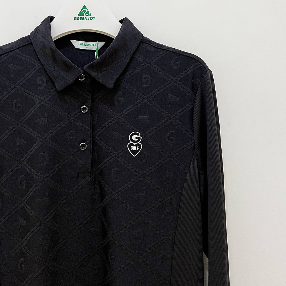 [행복한백화점][그린조이] 다이아 프린트 긴팔 카라 PK 티셔츠 블랙 여성 GP23KY11W >