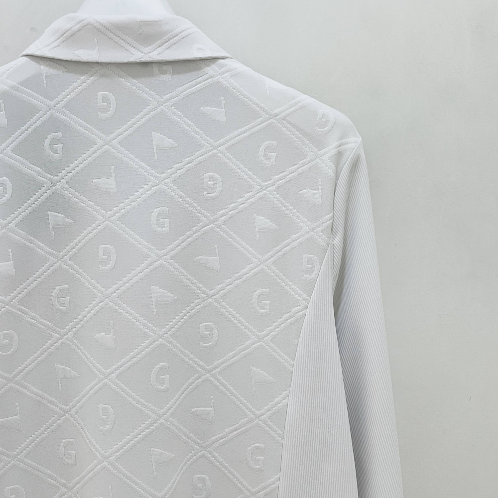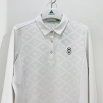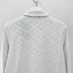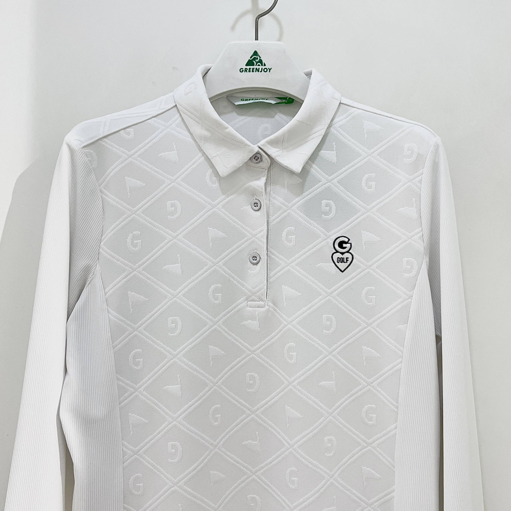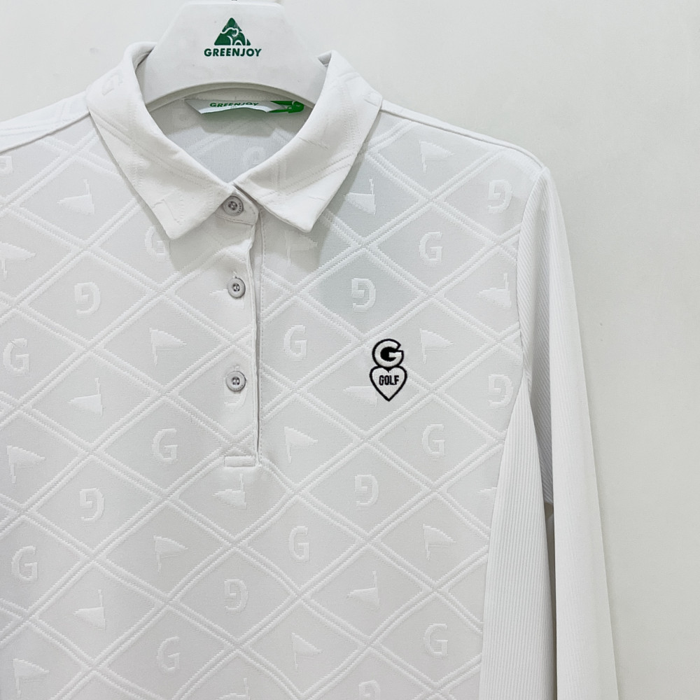 몸판 부분에 다이아 패턴과 포인트가 더해진 여성 긴팔 카라 PK 티셔츠입니다.