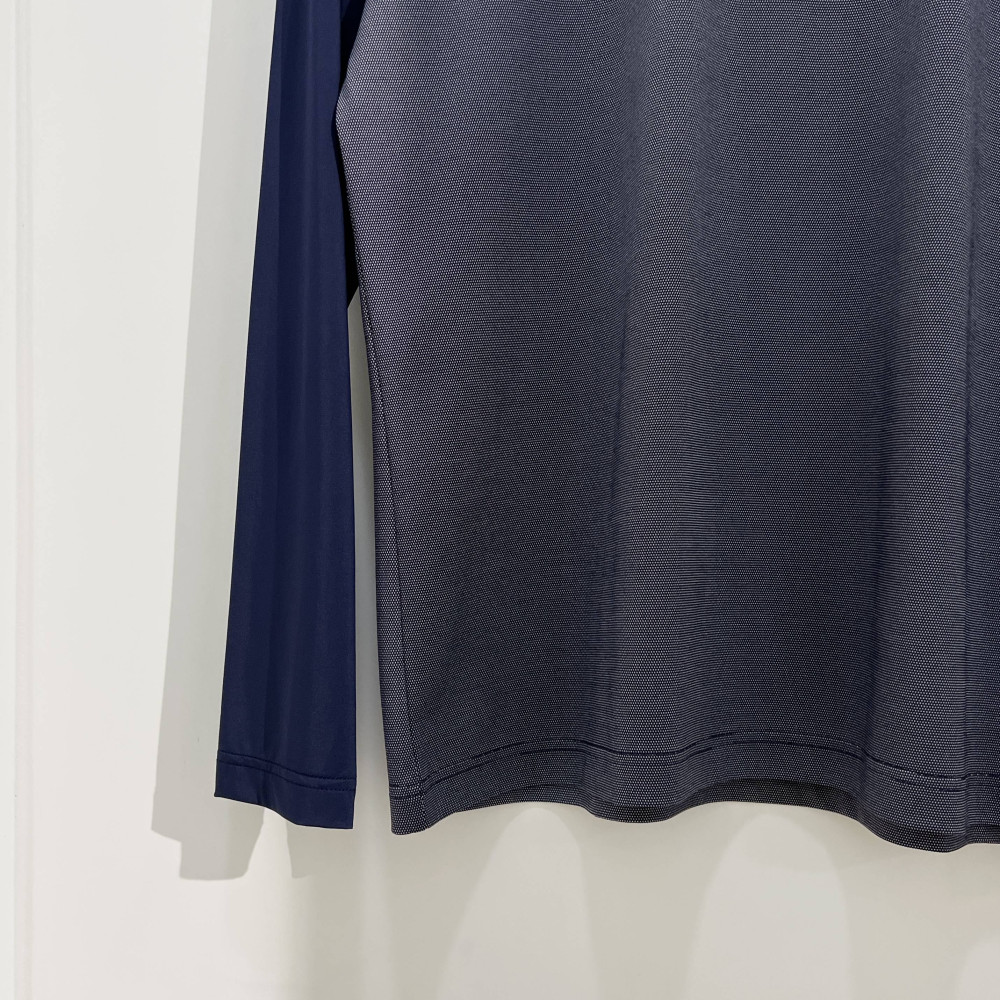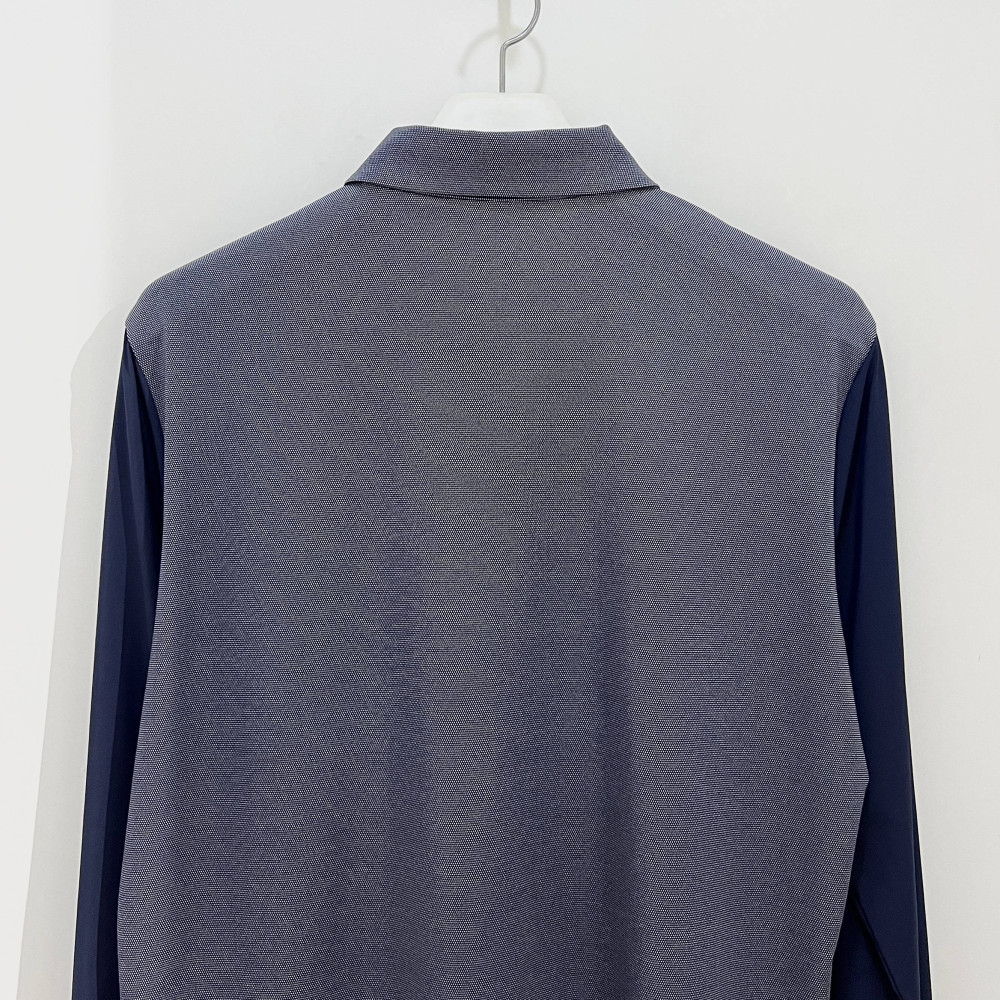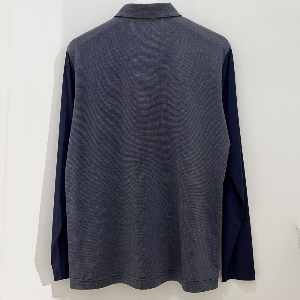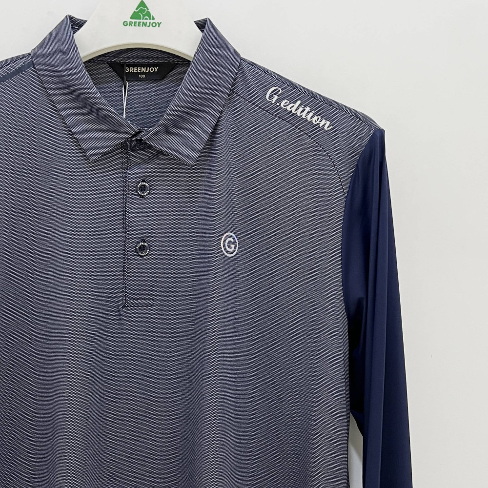 소매 부분에 냉감 소재를 더해준 남성 긴팔 카라 티셔츠입니다.