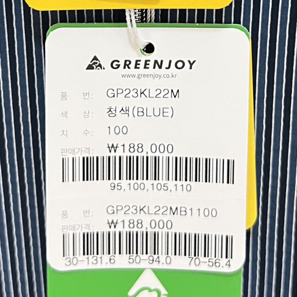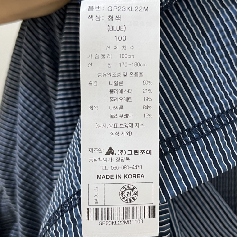 [행복한백화점][그린조이] 소매배색 잔스트라이프 반지퍼 긴팔 티셔츠 블루 남성 GP23KL22M 요약정보 및 구매