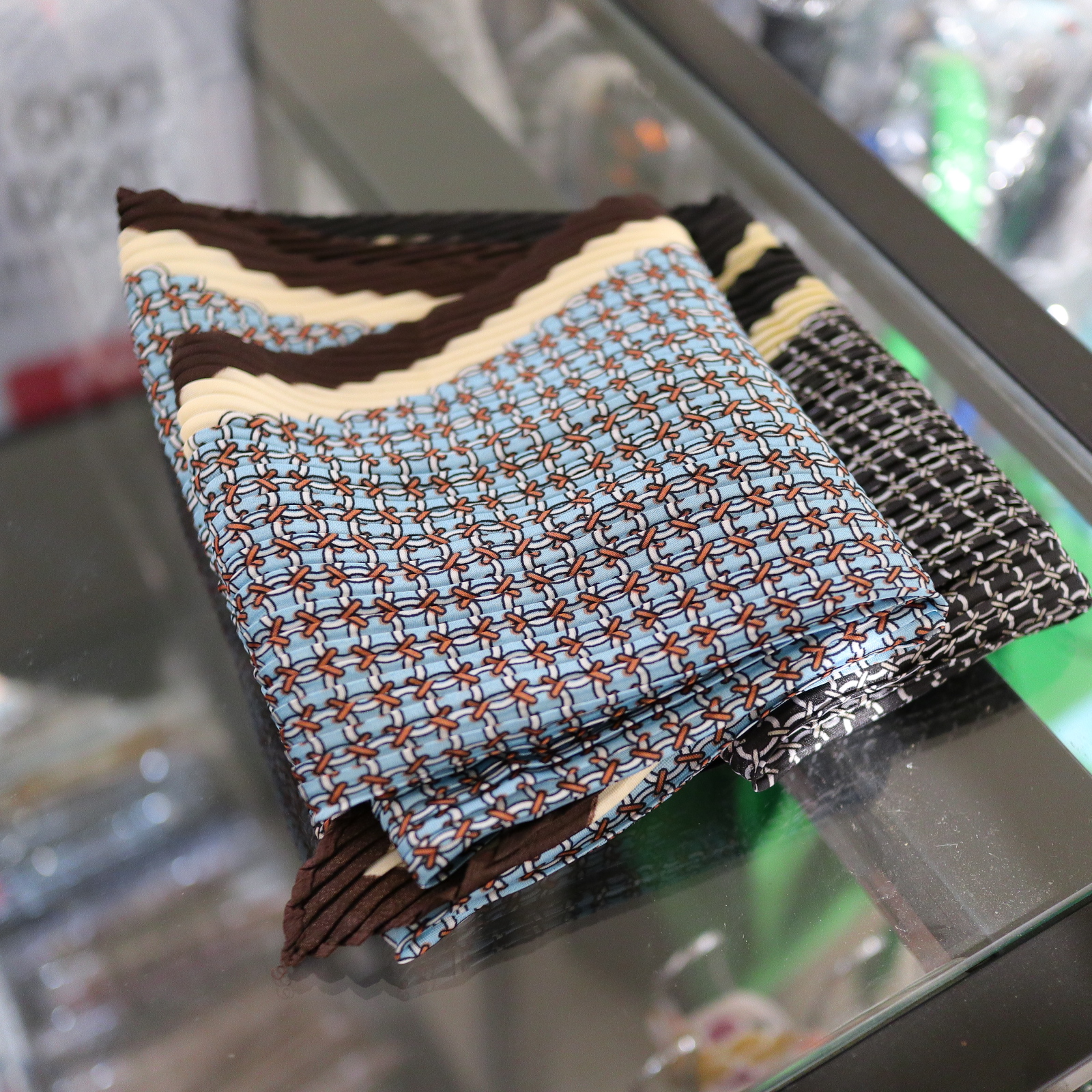 세련된 패턴의 주름 스카프에요~