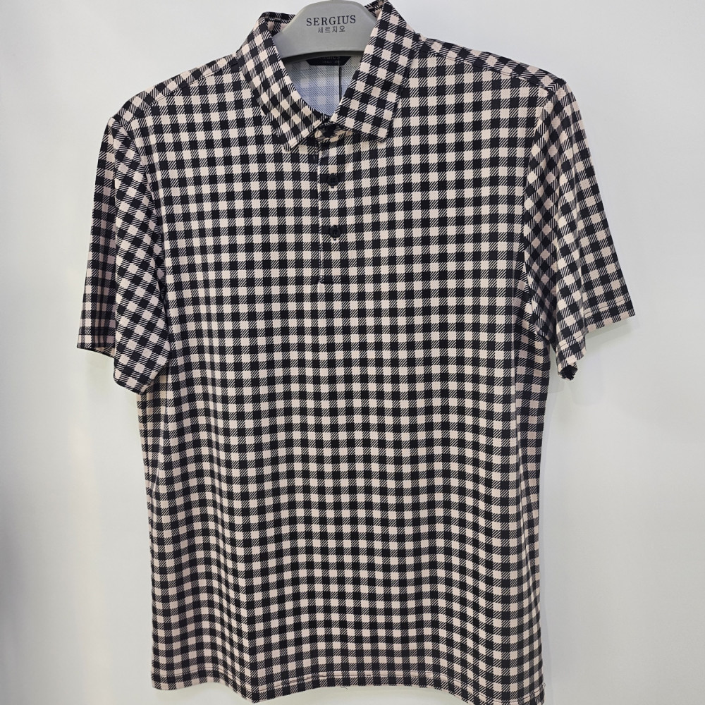 [행복한백화점][세르지오]베이지 체크 반팔 티셔츠 STSDKMD2884