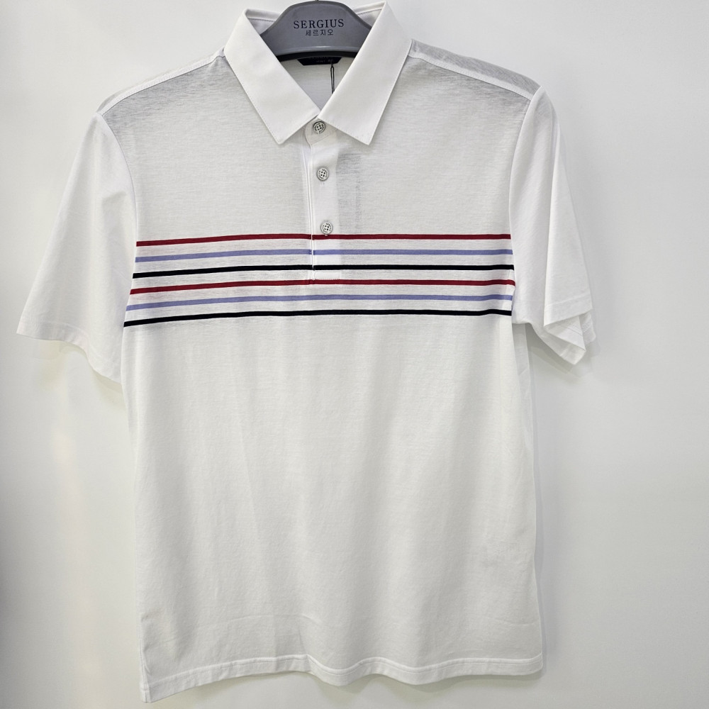 [행복한백화점][세르지오]레드 줄무늬 화이트 반팔 티셔츠 STSDKMD2873