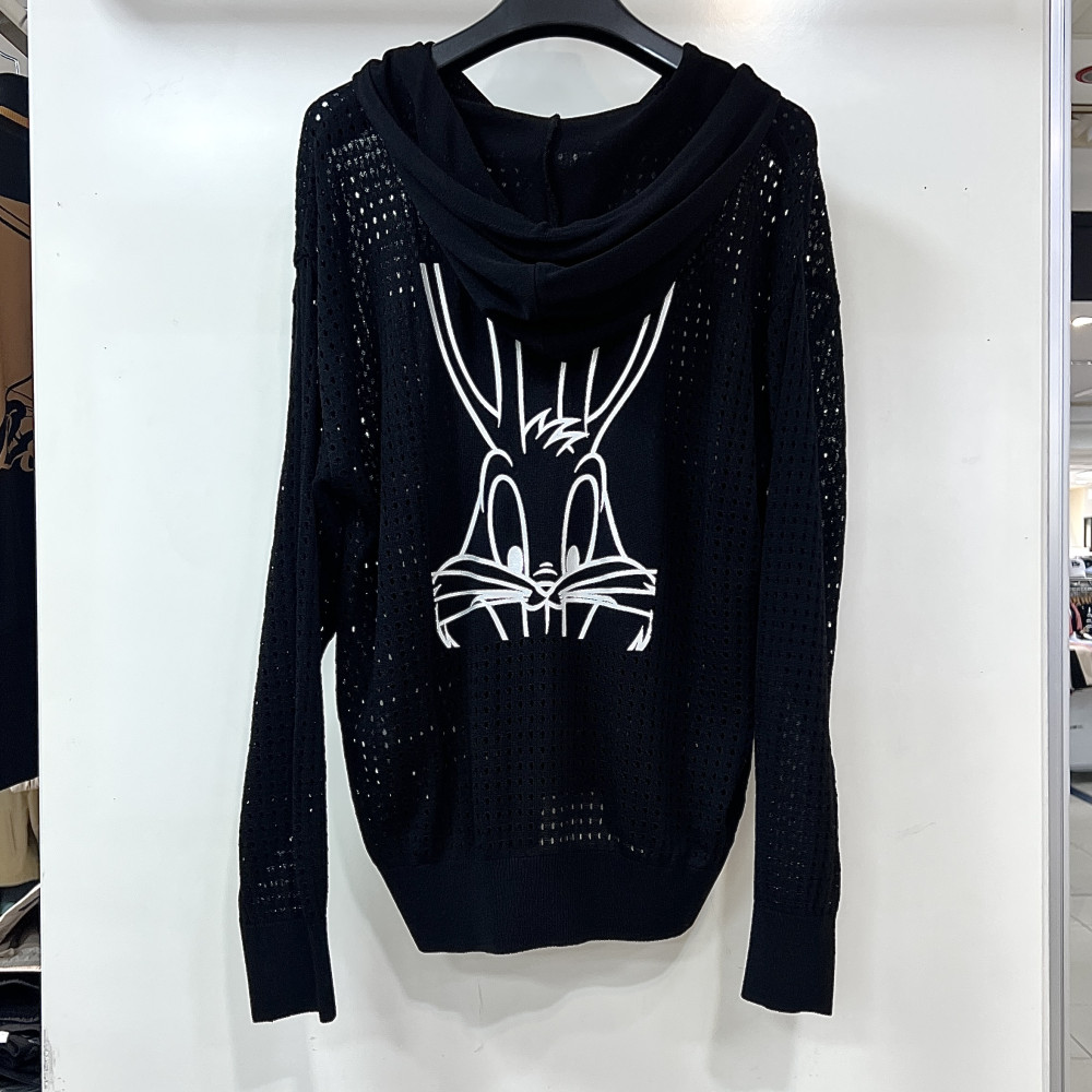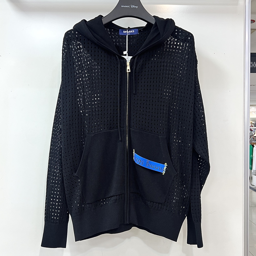 [행복한백화점][디즈니골프]크로셰 펀칭 루즈핏 니트 후드 집업 가디건 블랙 여성 SP1LKG015