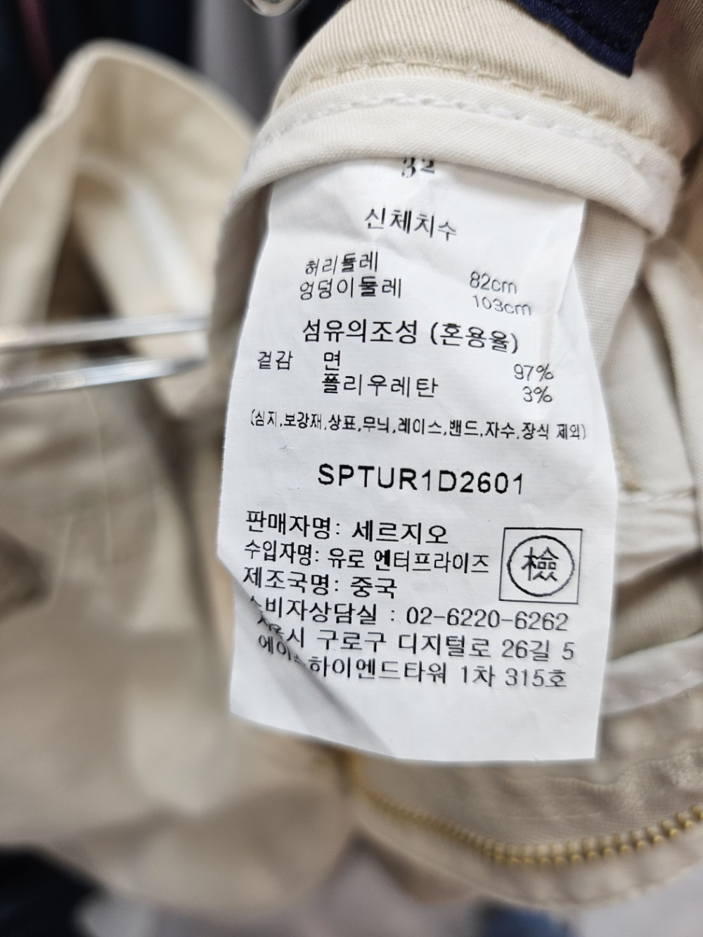 [행복한백화점][세르지오]면스판 베이지 일자 면바지 aptur1d52601 >
