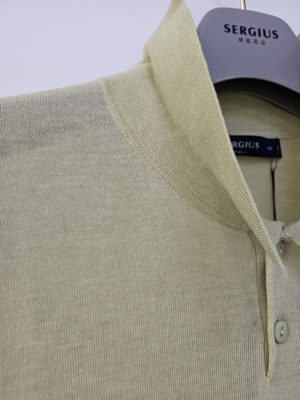 [행복한백화점][세르지오] 냉감 라이트 올리브 카라반팔 니트티셔츠 sntur1d2507 >