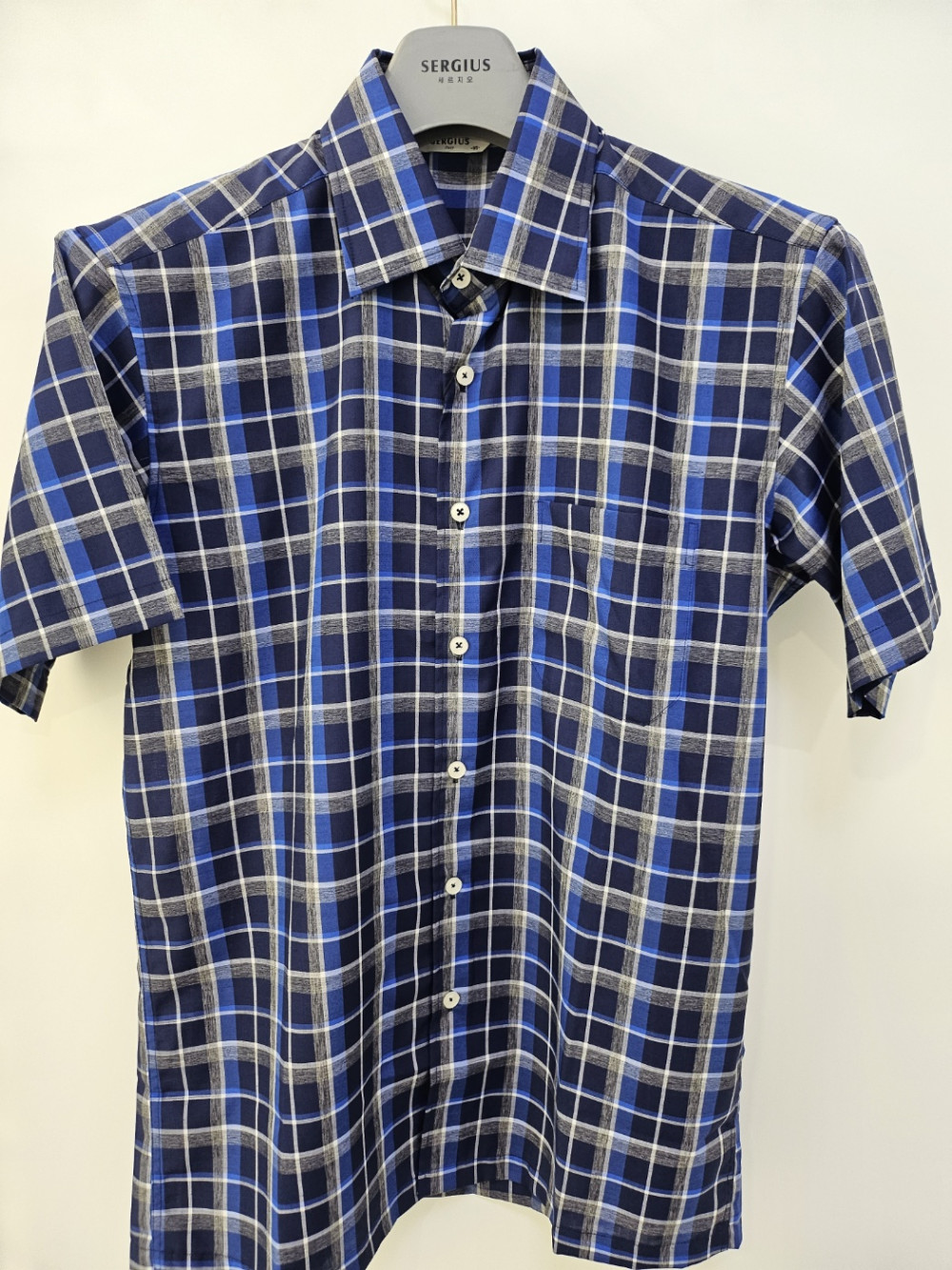 [행복한백화점][세르지오]선염 네이비 체크 남방 sytgumg2494