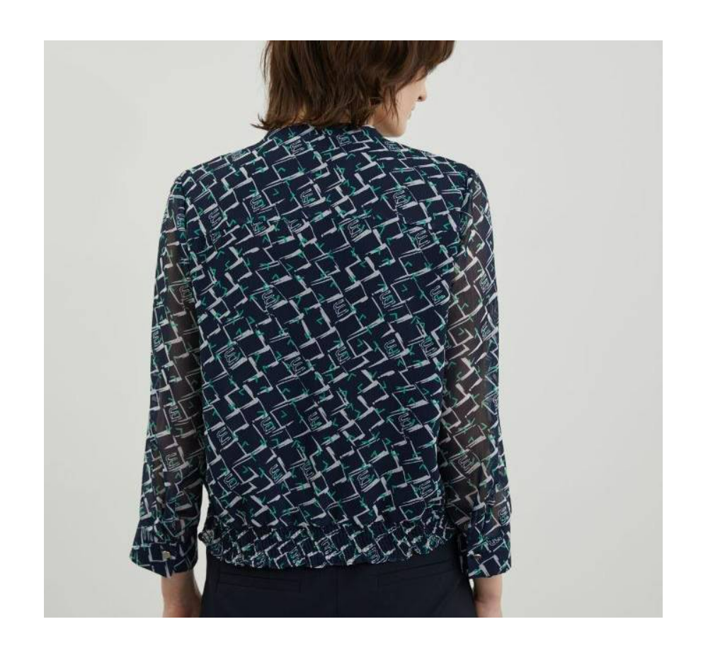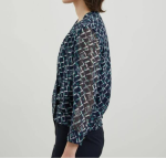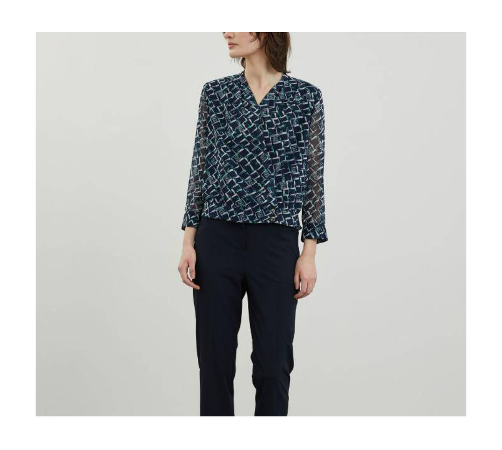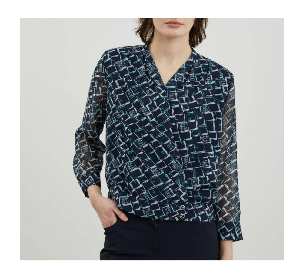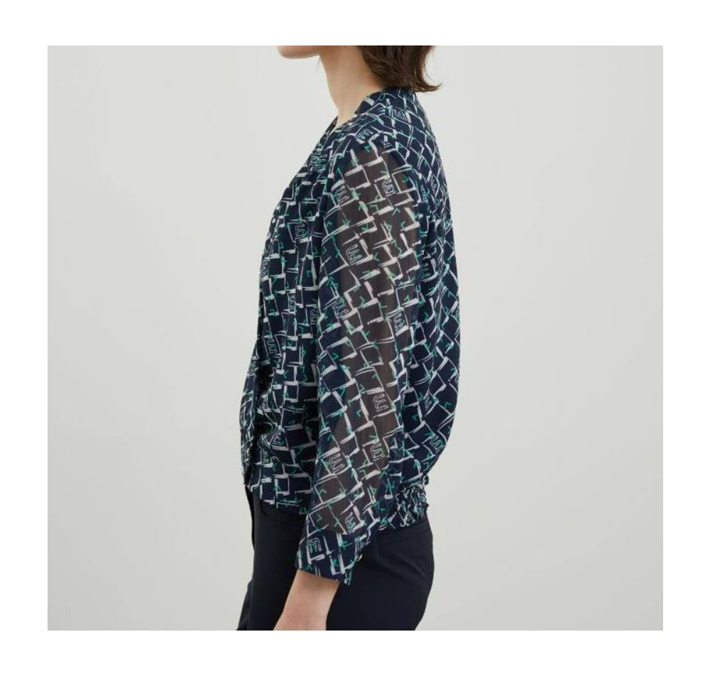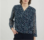 기하학 울오버 프린트 쉬폰소재의 랩 블라우스 입니다