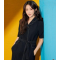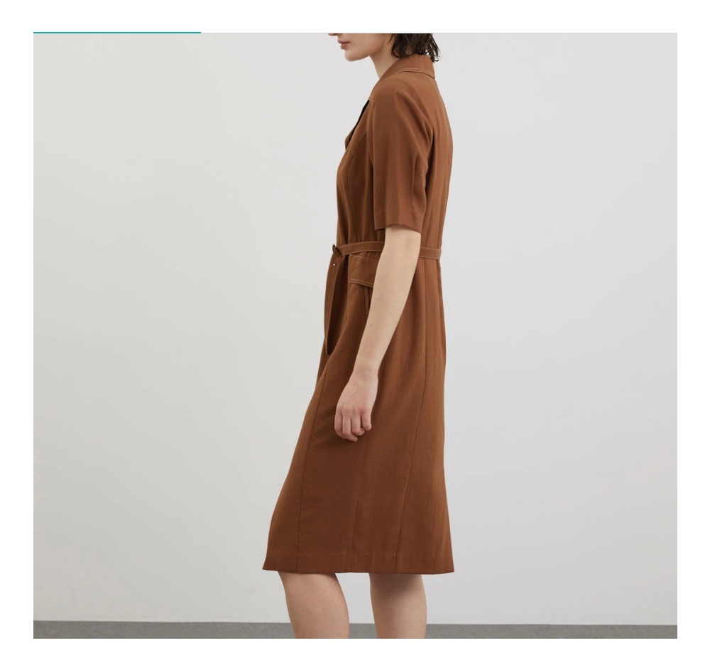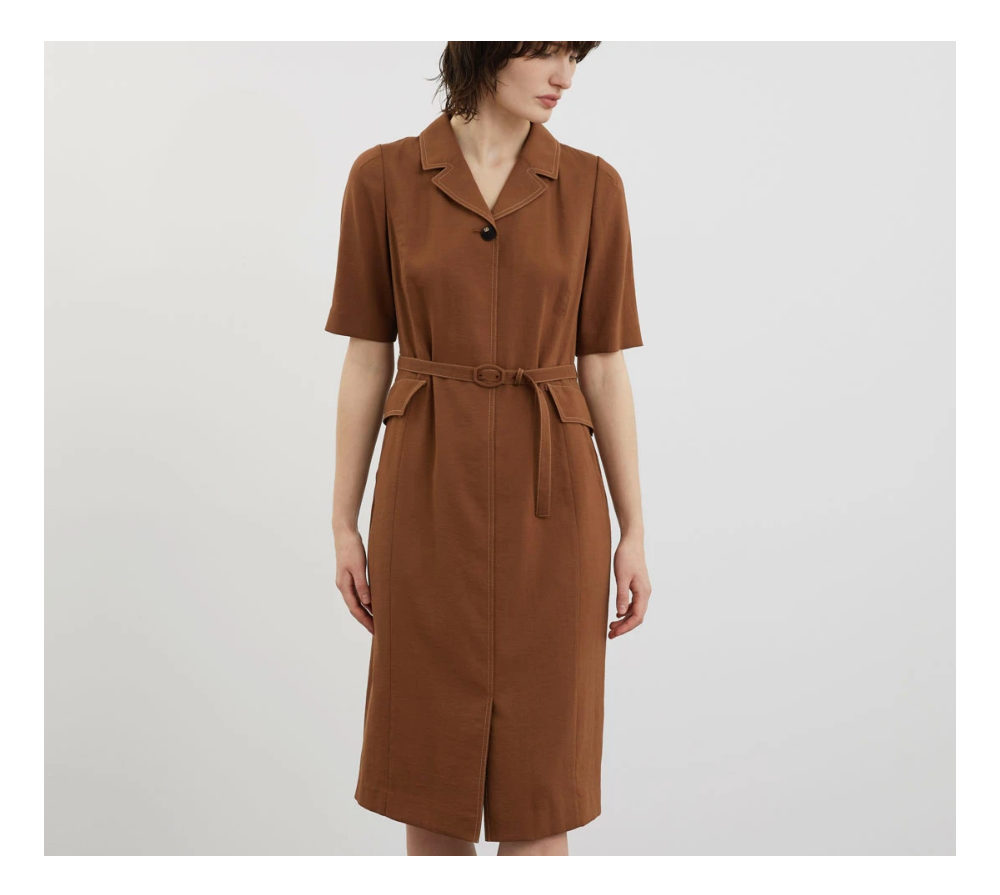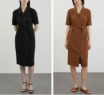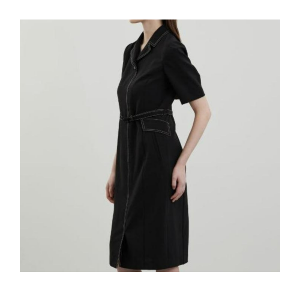 엠블럼 원버튼과 배색 스티치로 포인트를 준 H라인 원피스 입니다