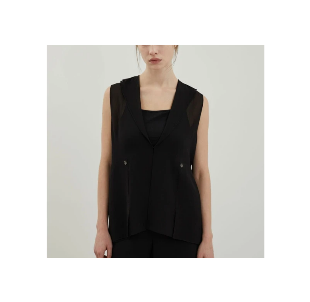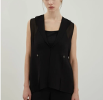 주름,여성스러운,시스루,쉬폰,A라인,베스트,조끼