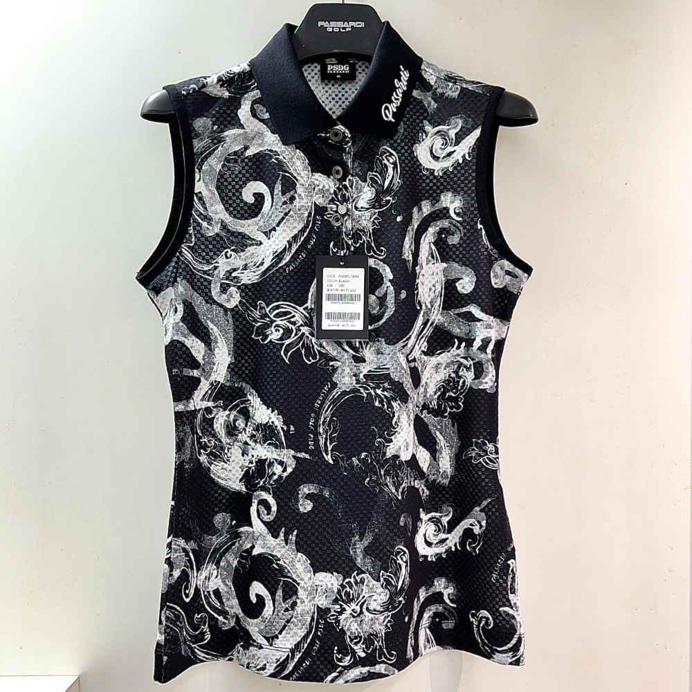 [행복한백화점][파사디]프린트 민소매 카라 티셔츠 블랙 여성 P25MTL183M