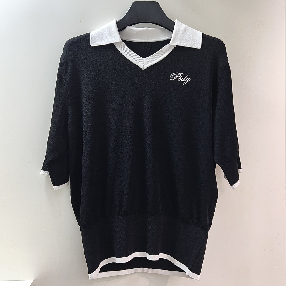 [행복한백화점][파사디]V넥 레이어드형 에리 반팔 니트 블랙 여성 P25MKP364M
