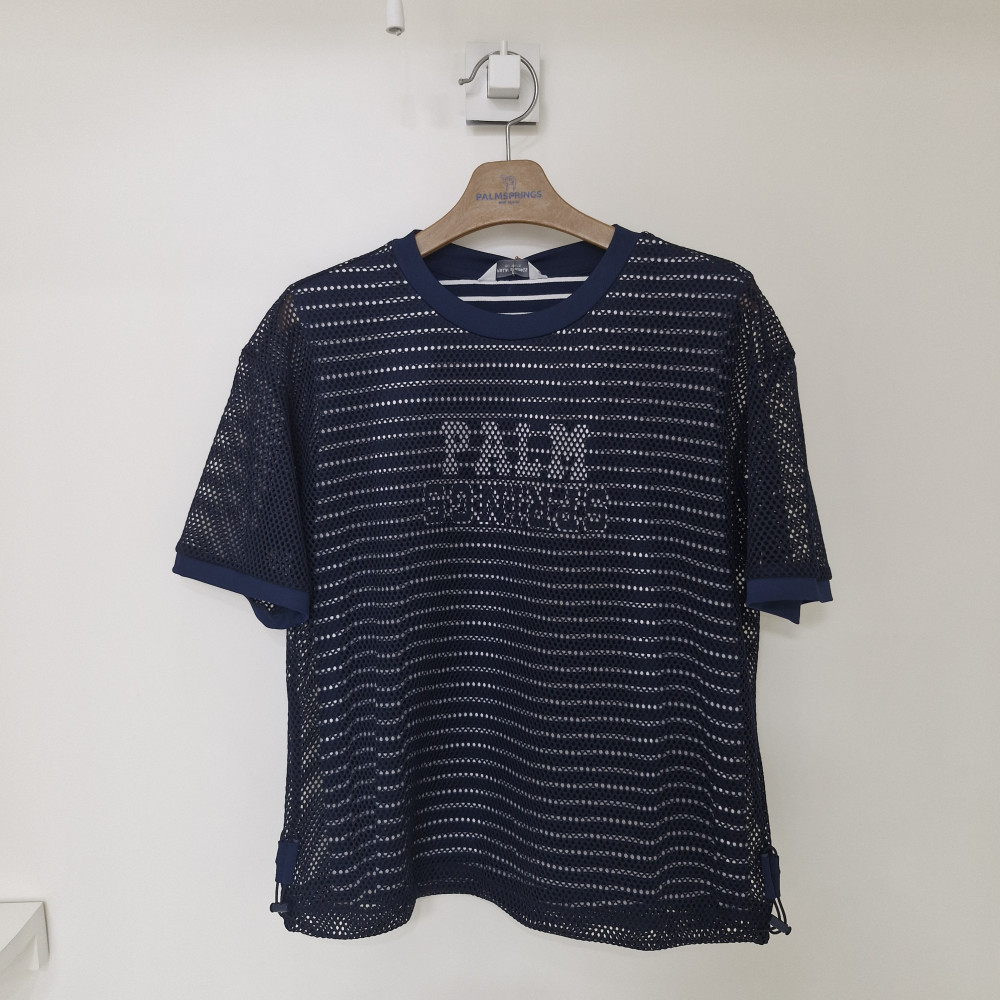 [행복한백화점][팜스프링스]STRL252266 스트라이프 메쉬레이어드 라운드 티셔츠드