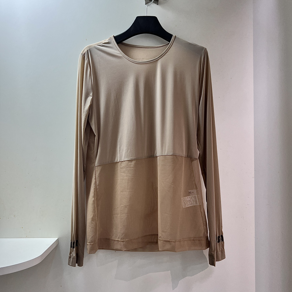 [행복한백화점][파사디]메쉬 배색 저데니아 긴팔 티셔츠 베이지 여성 P24ATPM02M