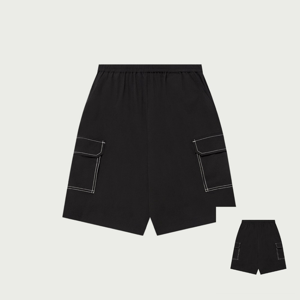 부드럽고 신축성이 좋은 나일론 스판 원단에 생활방수 기능과 허리 스트링으로 조절이 가능한 카고포켓 스티치가 포인트인 5부 트레이닝팬츠