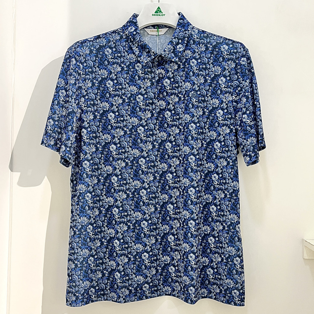 [행복한백화점][그린조이]플라워 프린트 반팔 카라 티셔츠 네이비 남성 GS25KY32M