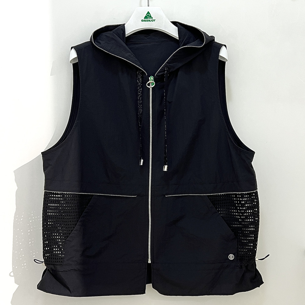 [행복한백화점][그린조이]메쉬 패치 후드집업 베스트 블랙 여성 조끼 GP25WV21W