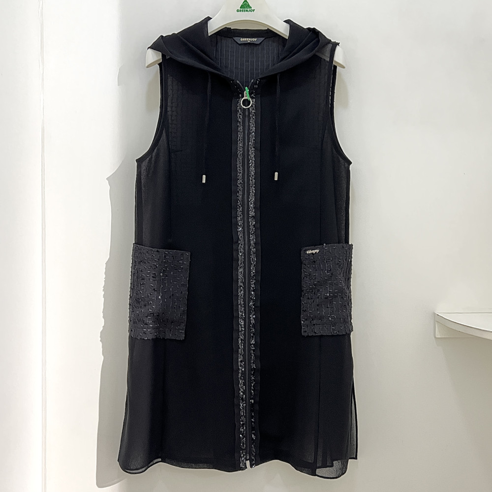 [행복한백화점][그린조이]쉬폰 롱 베스트 블랙 여성 조끼 GP24WV81W >