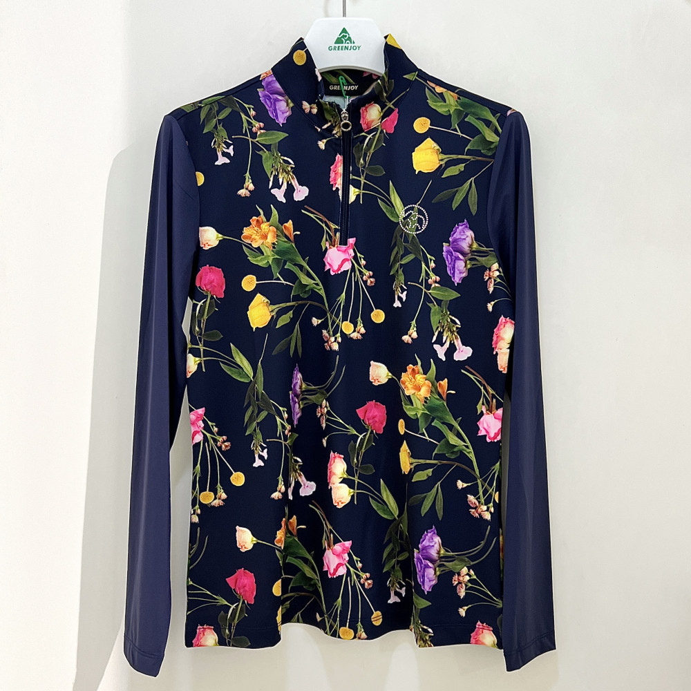 [행복한백화점][그린조이]봄 플라워 프린트 냉감소매 집업티셔츠 네이비 여성 GP24KL21W
