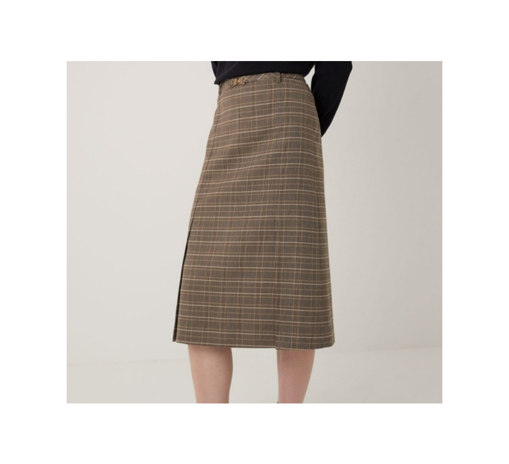 잔잔한 체크 스커트로 여성스럽지만 편안한 스타일을 연출할수 있습니다