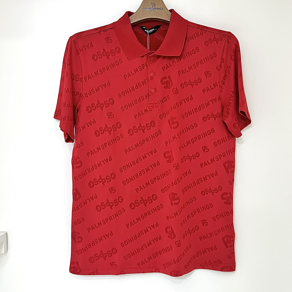 [행복한백화점][팜스프링스]사선 패턴 반팔 카라 티셔츠 레드 남성 STSM252164 >