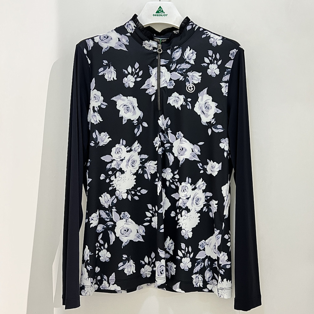 [행복한백화점][그린조이]플라워 프린트 냉감 소매 반지퍼 티셔츠 블랙 여성 GP25KL23W