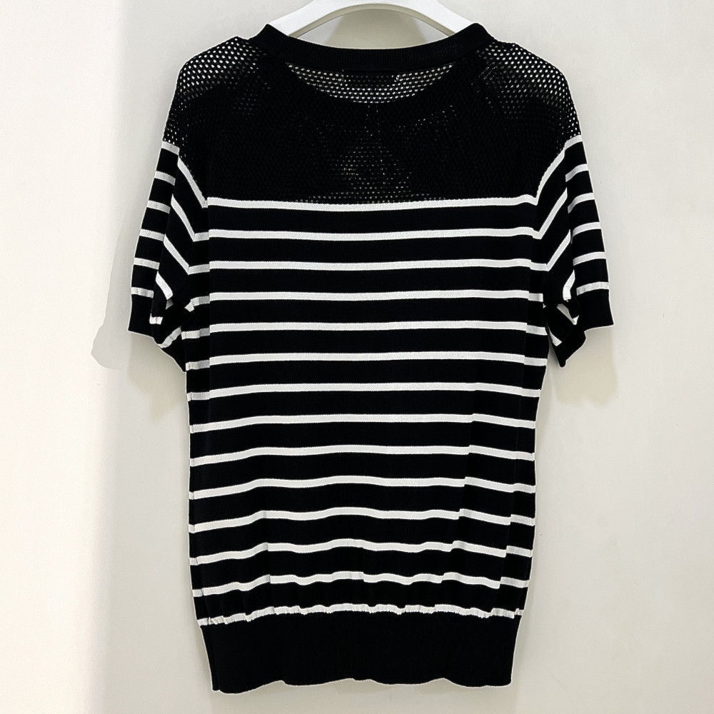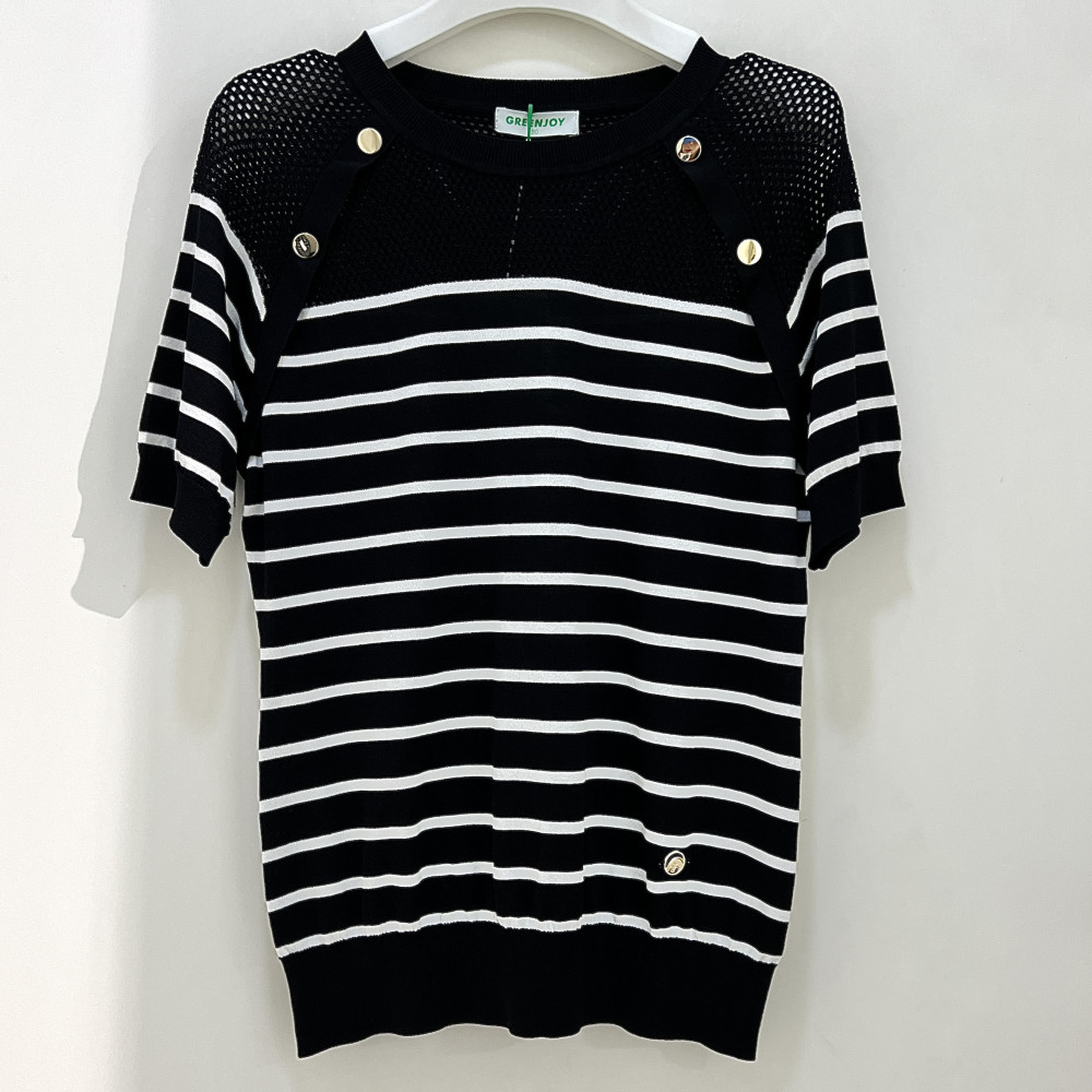 [행복한백화점][그린조이]스트라이프 메쉬 라운드 티셔츠 블랙 여성 GP23SR11W