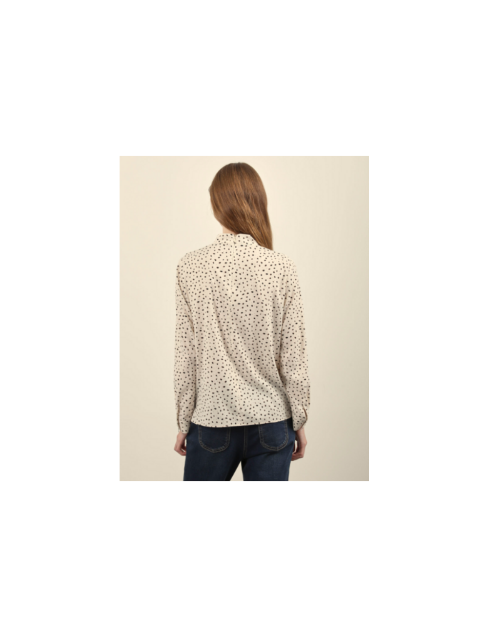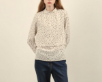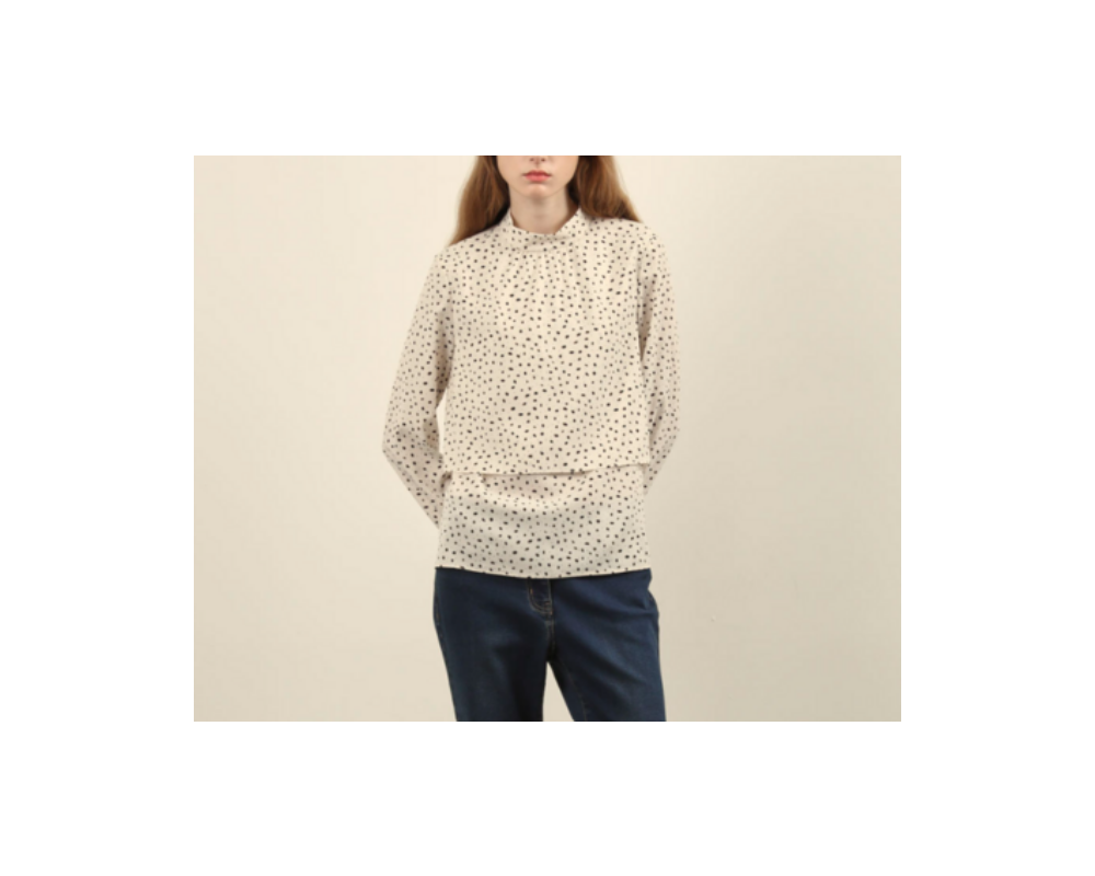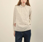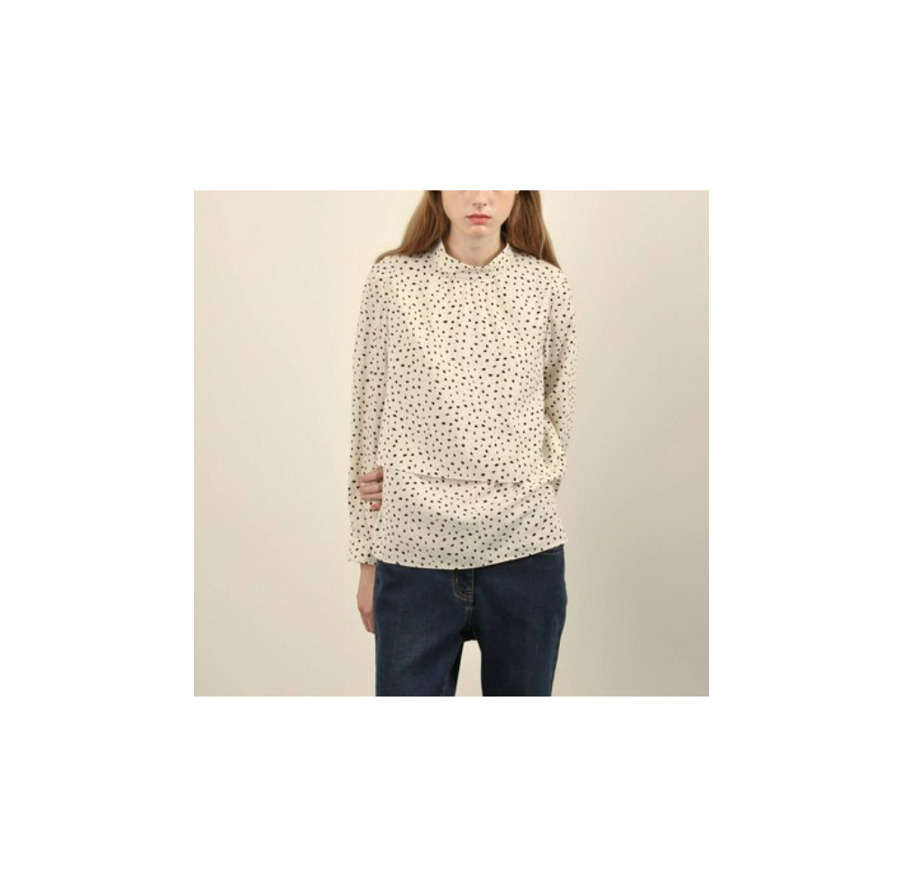 우아한 무드를 자아내는 프린트 밴드넥 블라우스 입니다