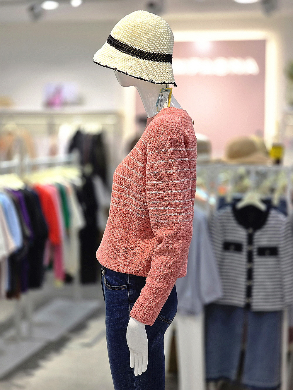 [행복한백화점][꼼빠니아] 가을 여성 단가라 니트 티셔츠 (핑크,베이지)CAFW9 WSL040 >