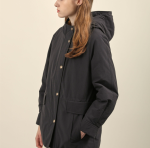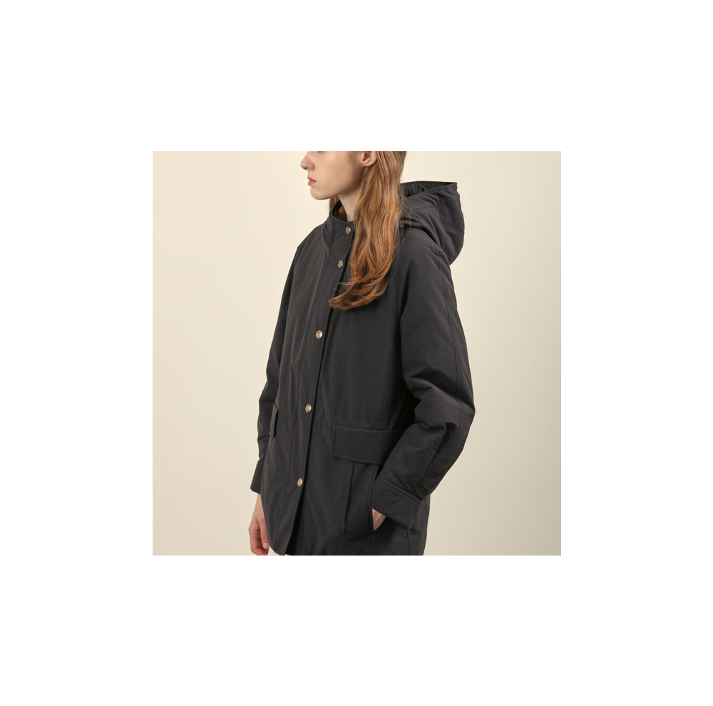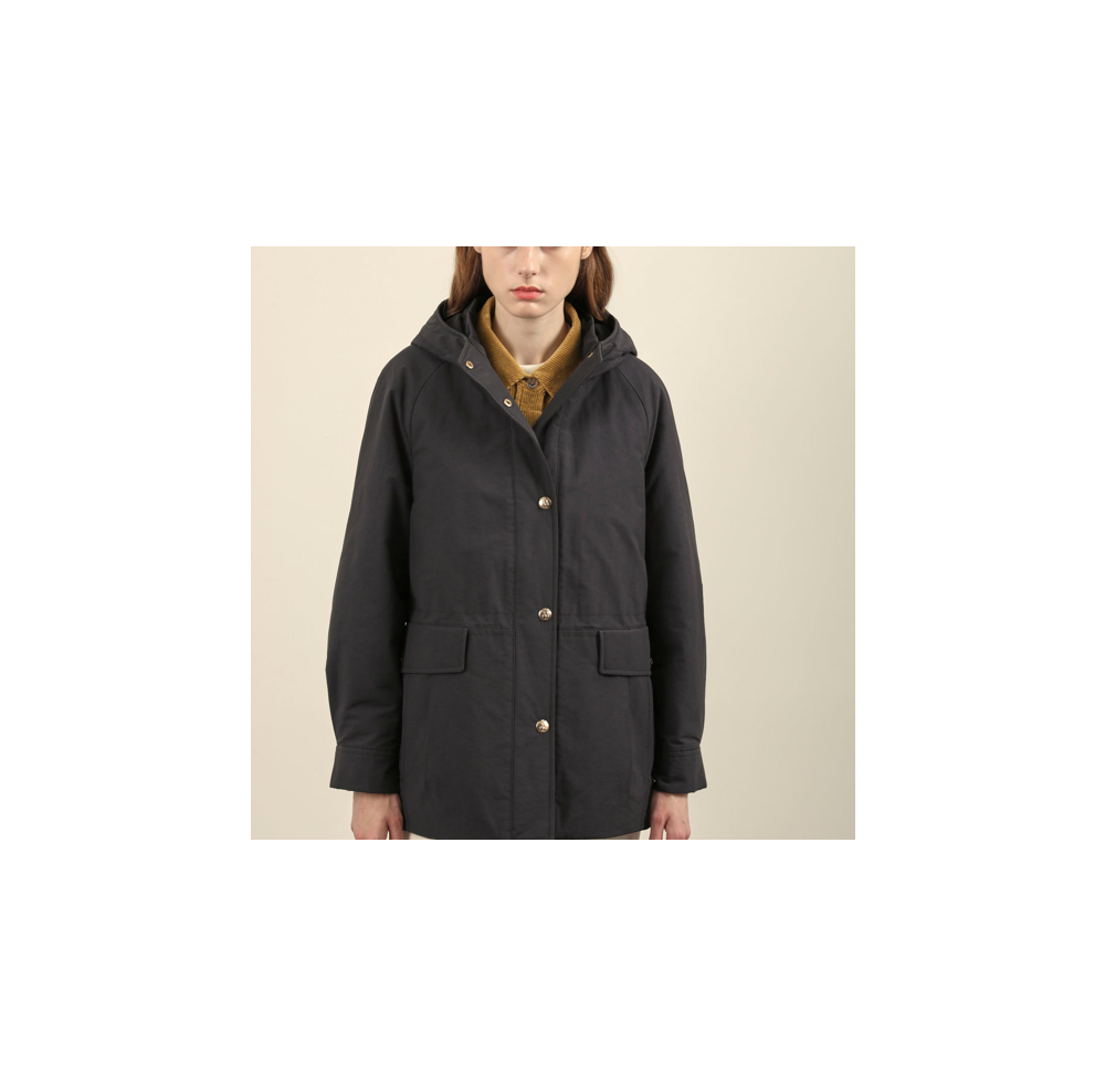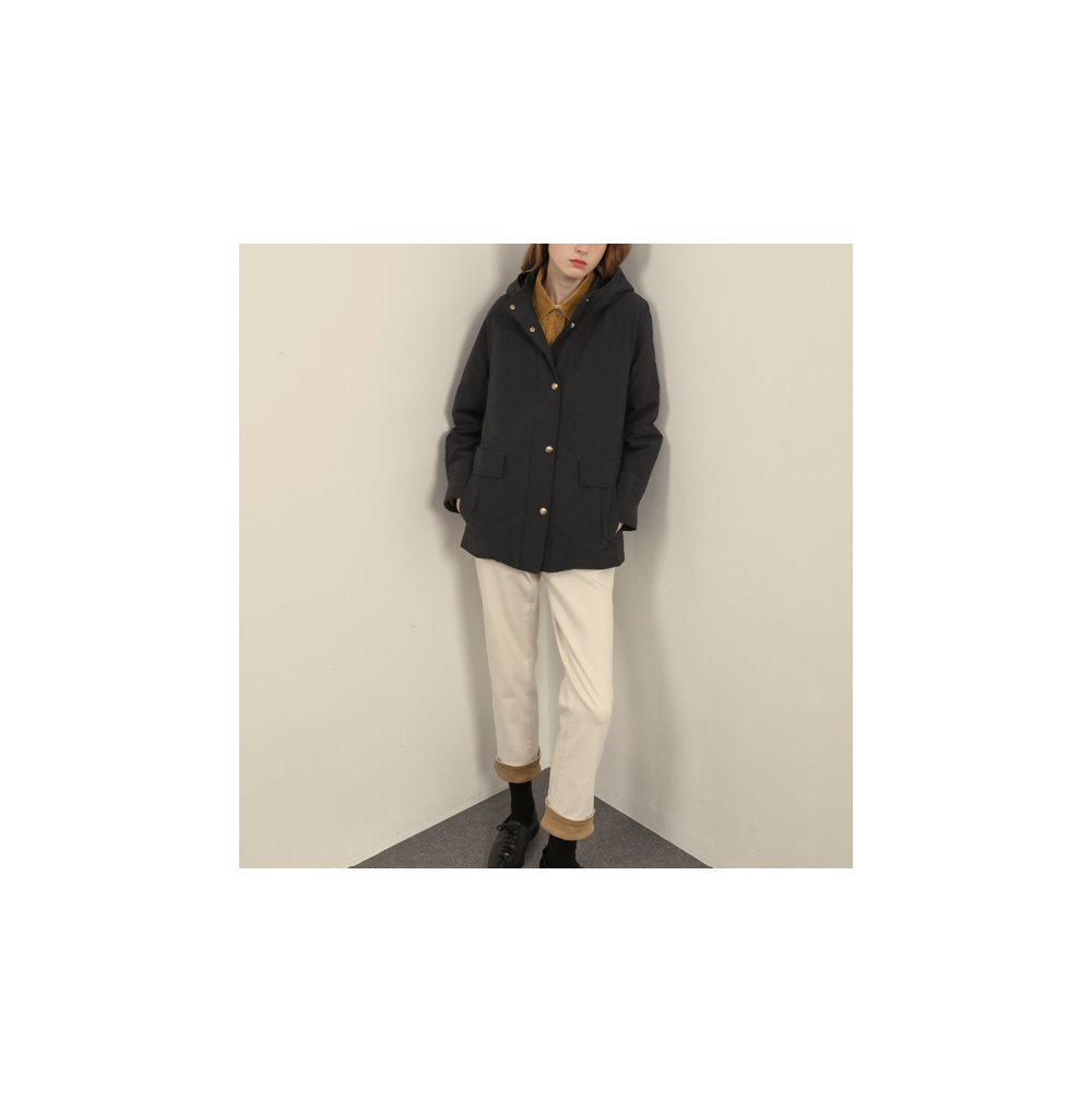 골드톤의 버튼을 세팅하여 포인트를준 후드 패딩 점퍼 입니다