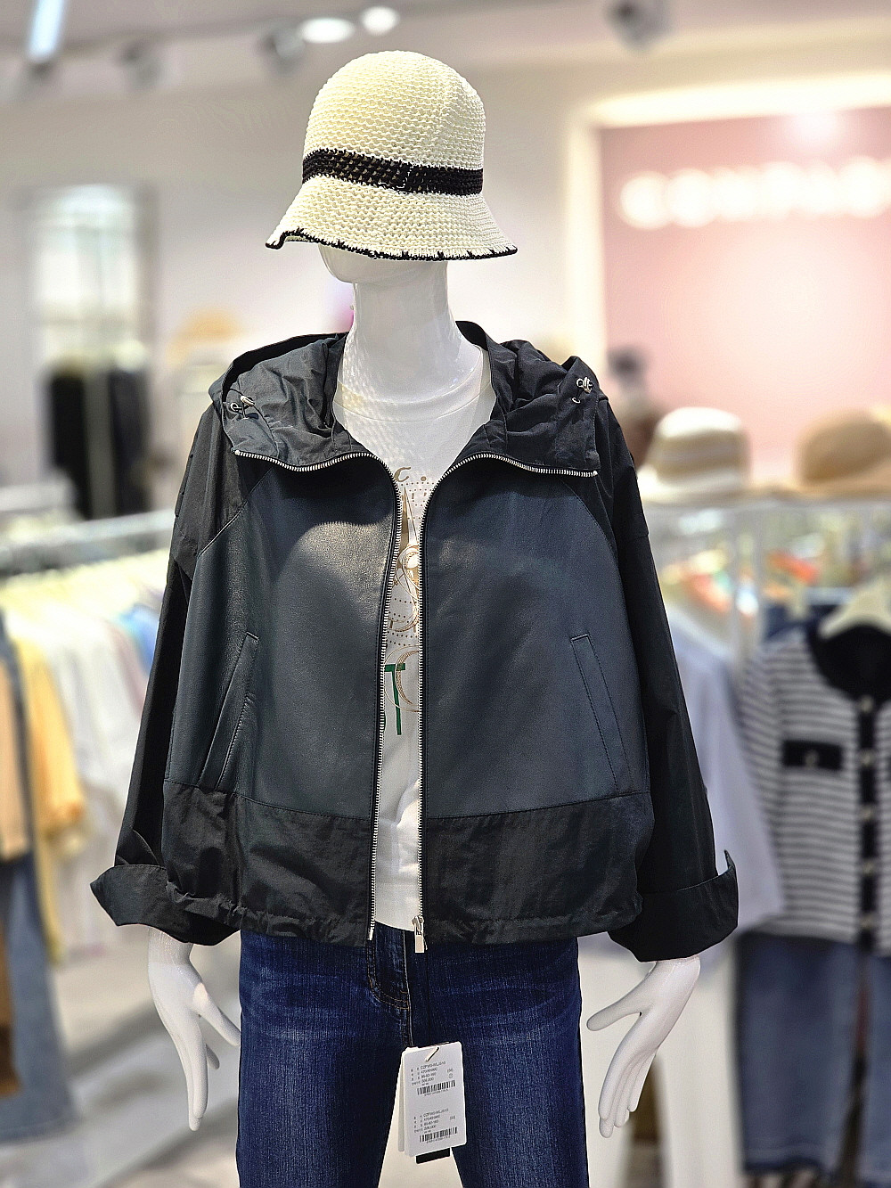 [행복한백화점][꼼빠니아] 가을 여성 가죽 배색 점퍼(카키,블랙) CZFW0-WLJ510 >