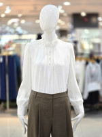 단정하면서도 여성스러운 무드가 돋보이는 프릴 넥 블라우스예요.