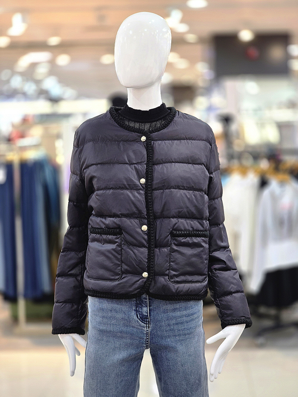 가볍고 따뜻한 퀼팅 패딩 자켓입니다. 라운드넥 디자인으로 세련된 분위기를 주며,