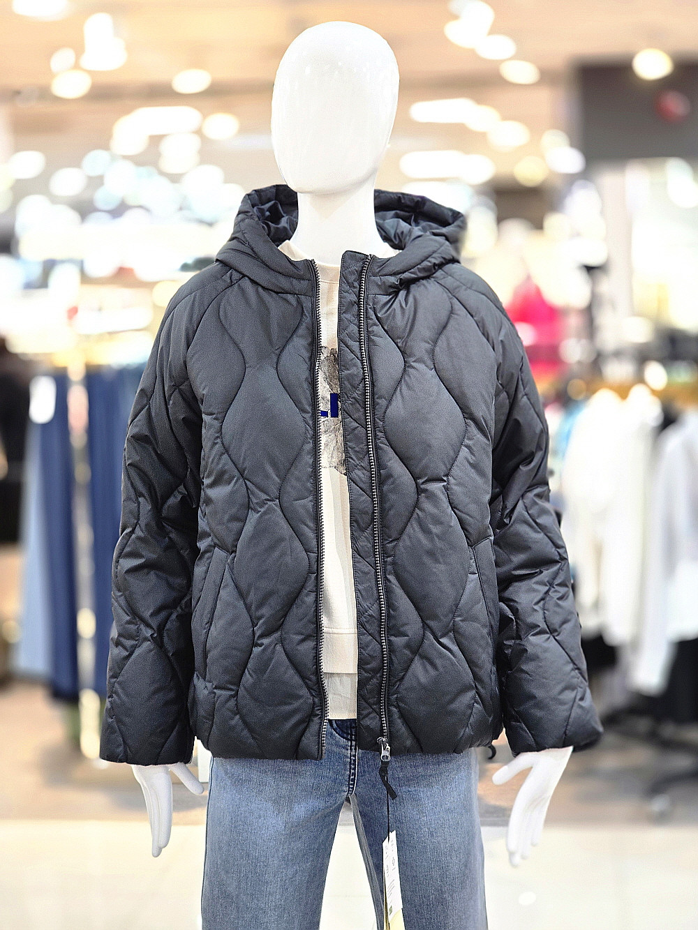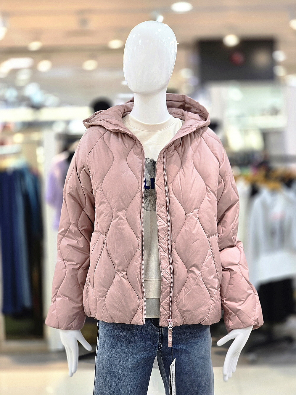 가볍고 따뜻한 퀼팅 디자인의 후드 패딩 점퍼입니다.