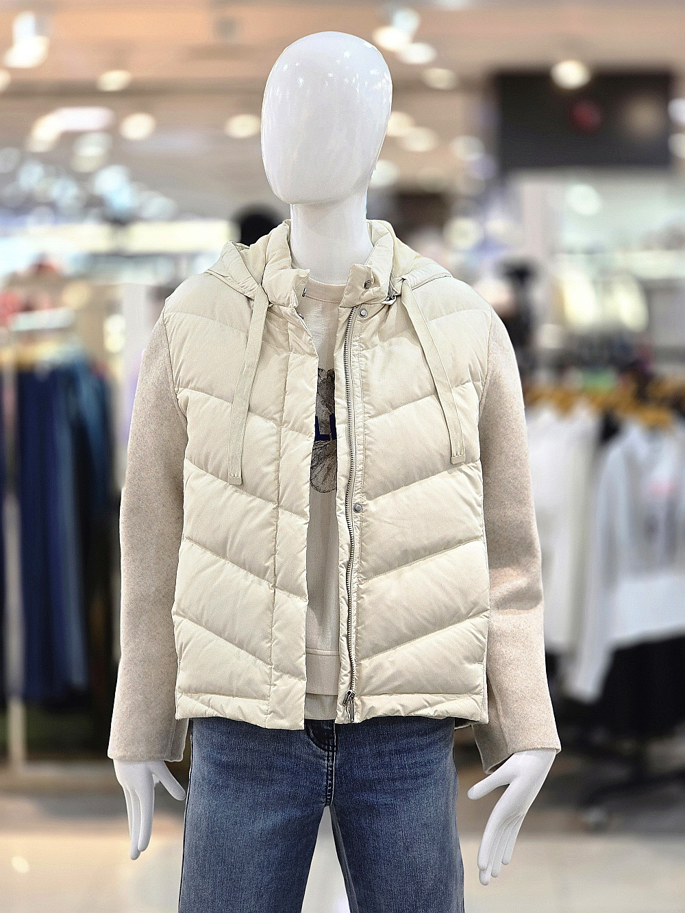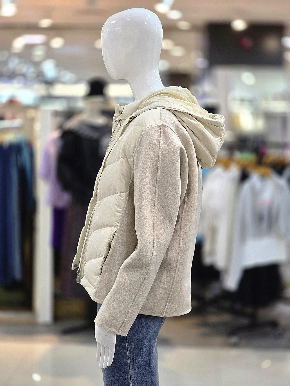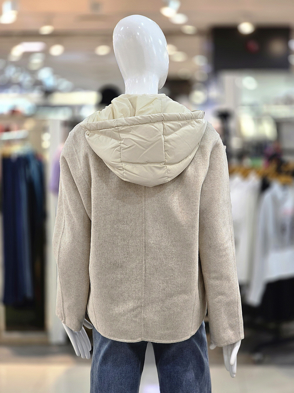 고급스러운 배색 디자인으로 포인트를 준 후드 오리털 점퍼입니다.