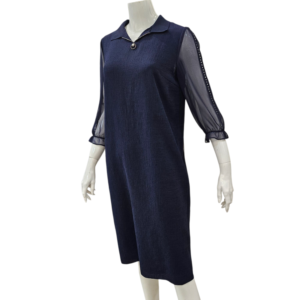 [행복한백화점][마담엘레강스]마담엘레강스 라운드넥7부소매쉬폰캉캉이원피스