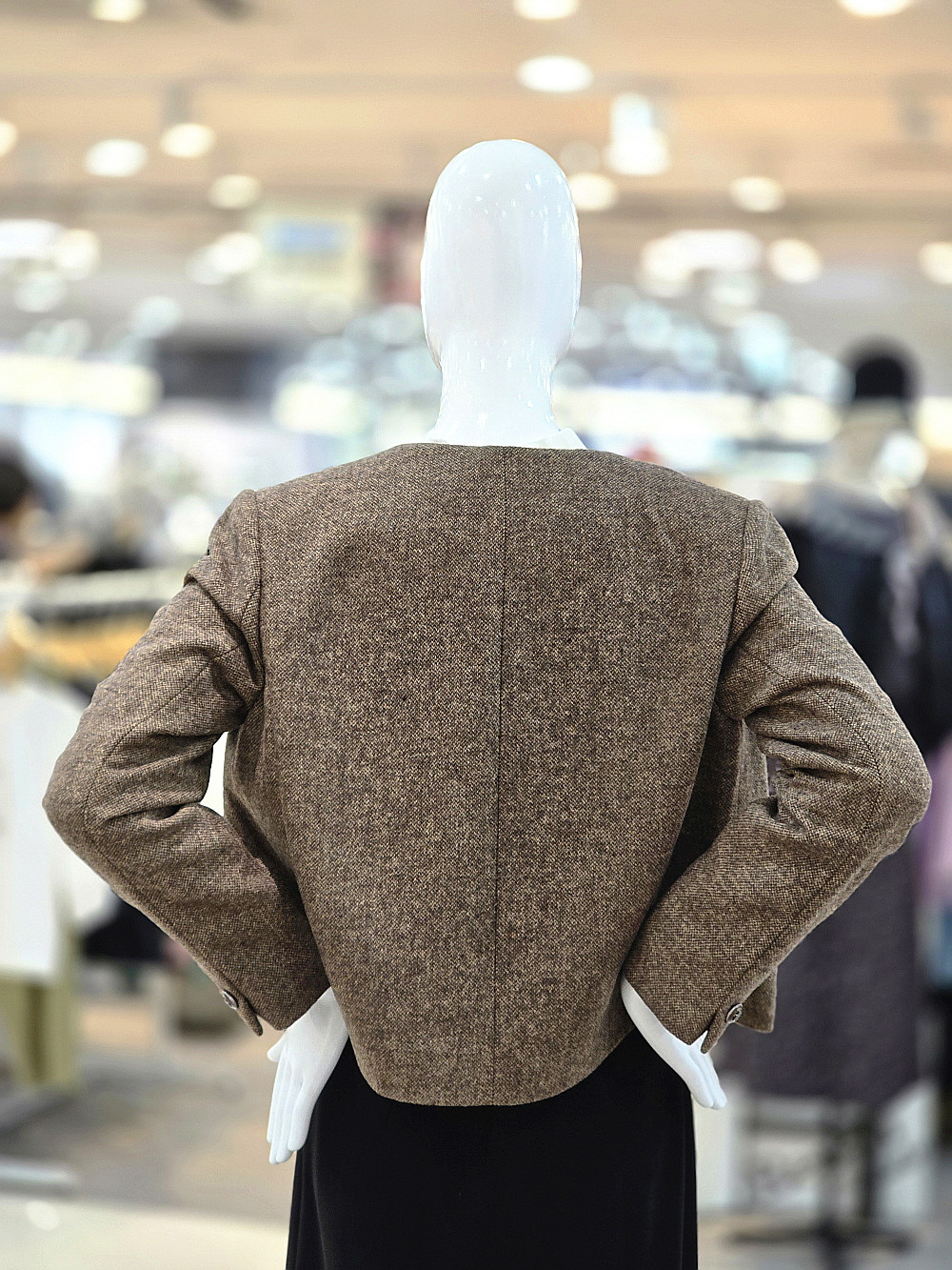 크롭 기장의 단정한 실루엣과 포켓 디테일이 깔끔하게 떨어져, 고급스러운 분위기를 연출합니다.