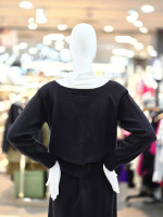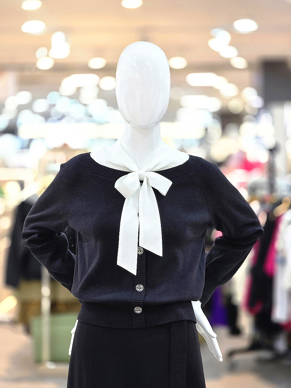 모던한 블랙 컬러에 배색 리본 디테일이 돋보이는 셔츠 레이어드 가디건입니다.