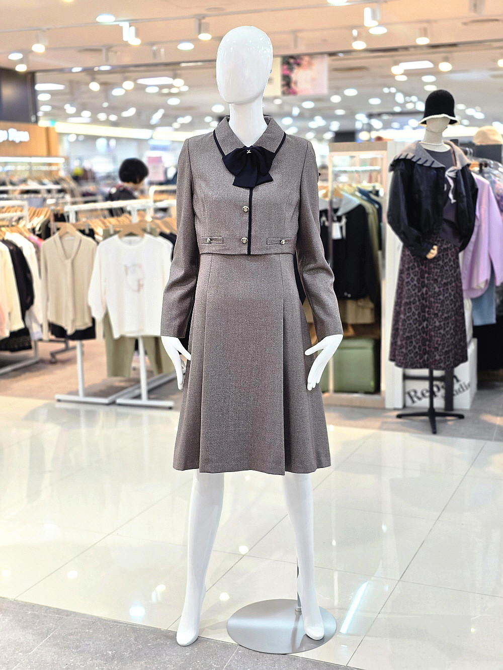 세련된 리본 디테일과 크롭 자켓을 덧입은 듯한 디자인이 매력적인 원피스입니다.