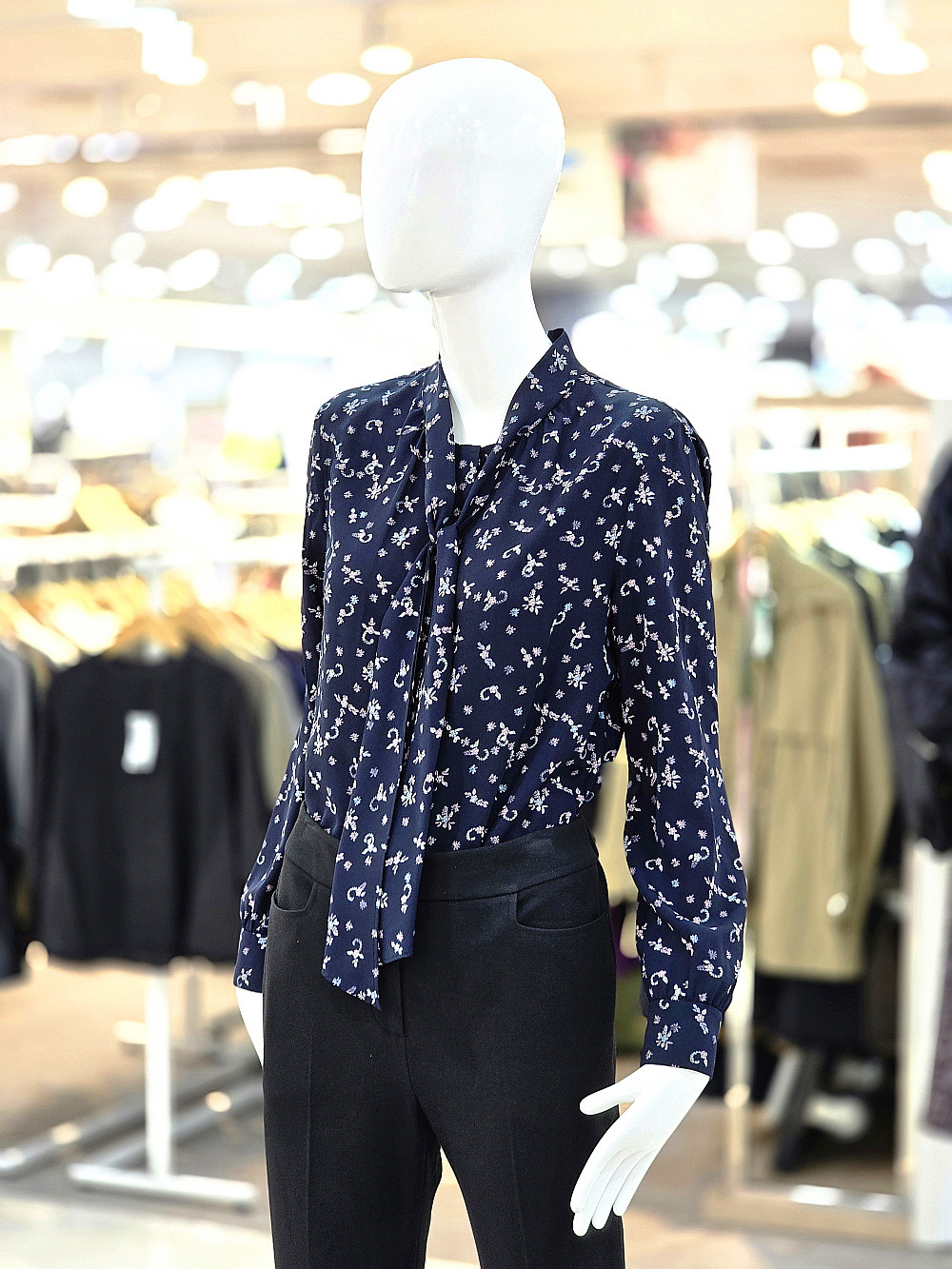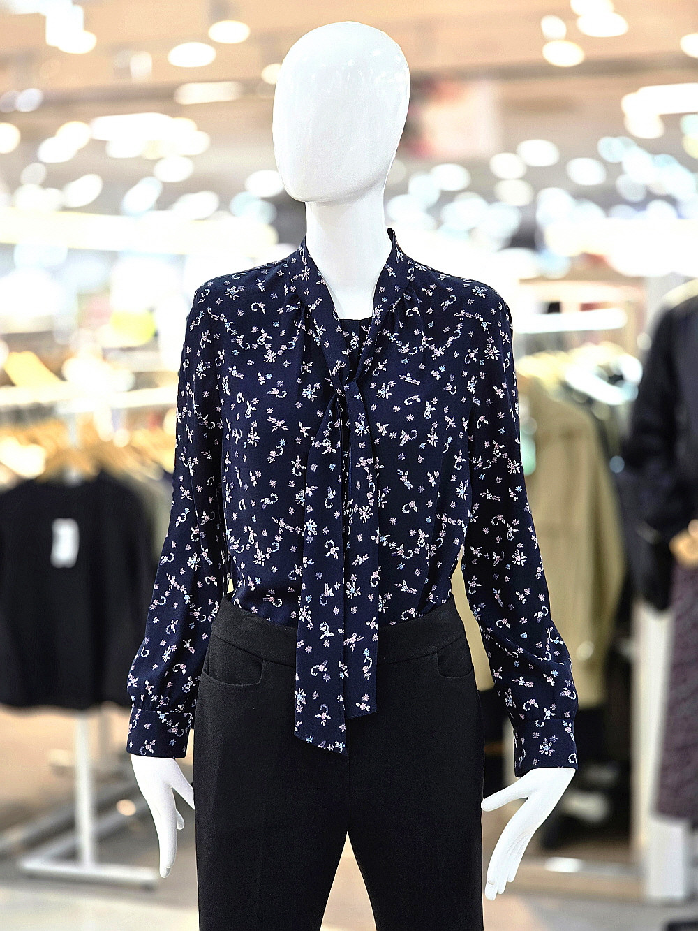 잔잔한 패턴 프린트가 돋보이는 블라우스입니다.