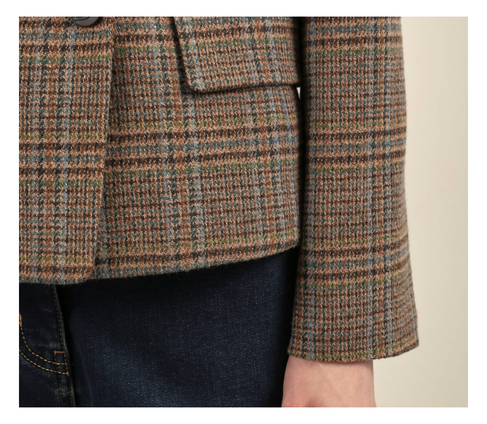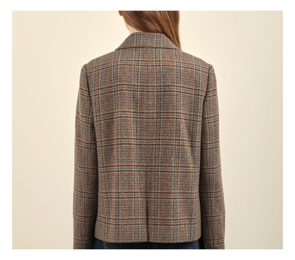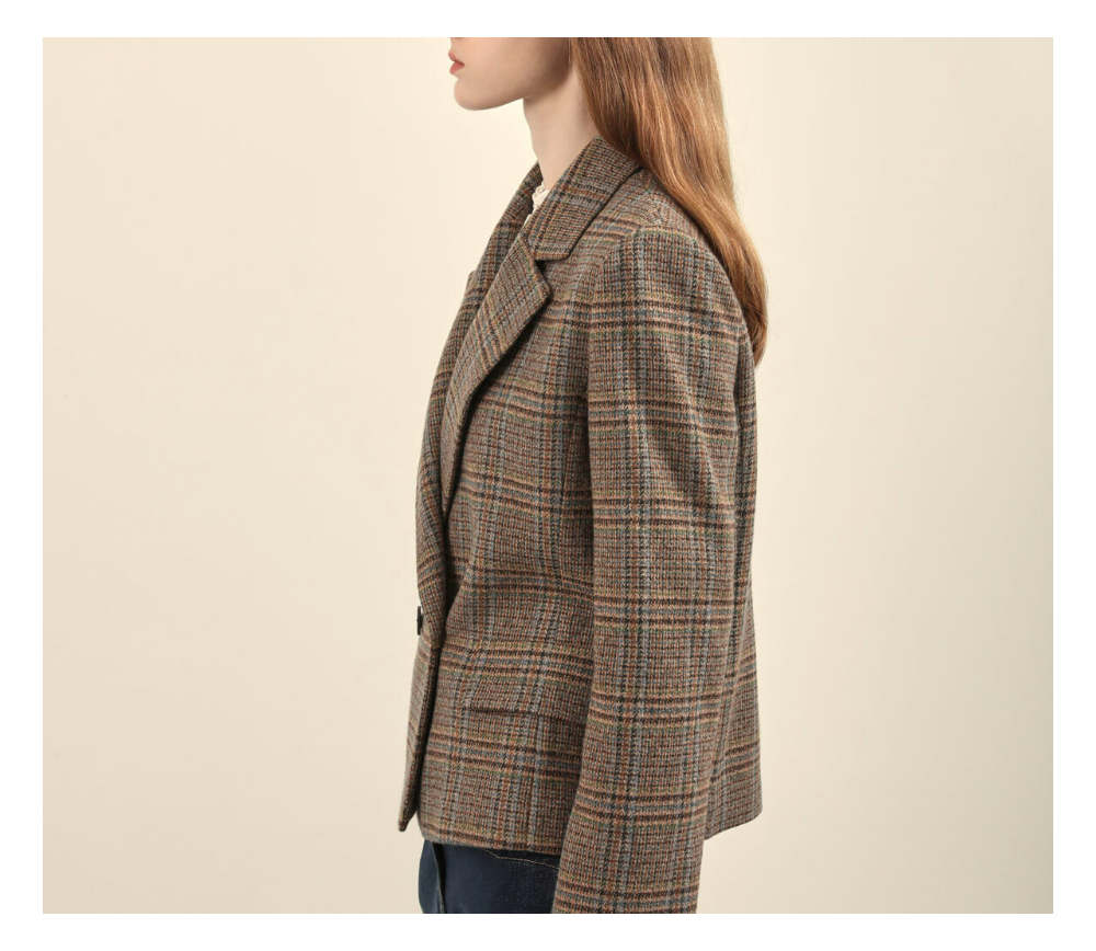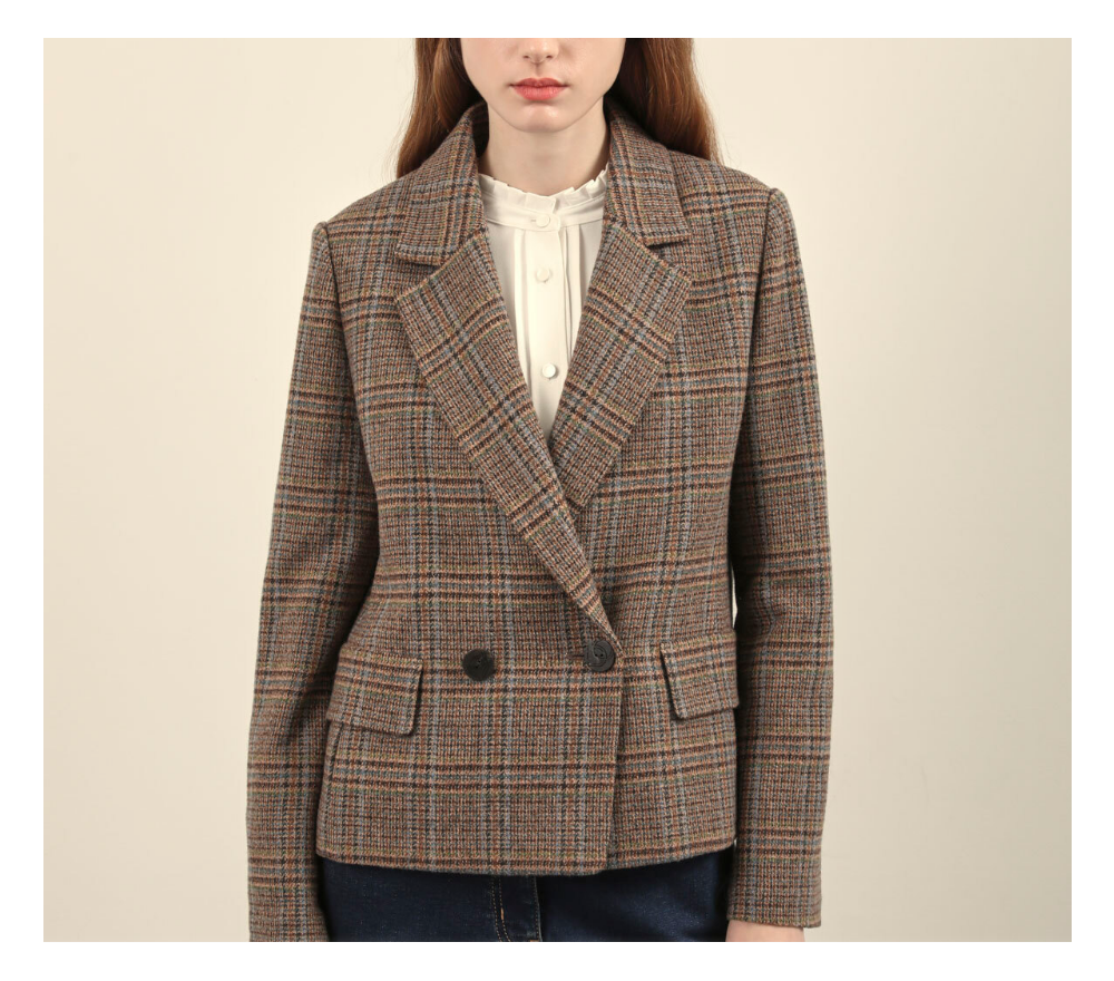 밑단까지 깔끔하게 떨어지는 실루엣의 더블 테일러드 자켓 입니다