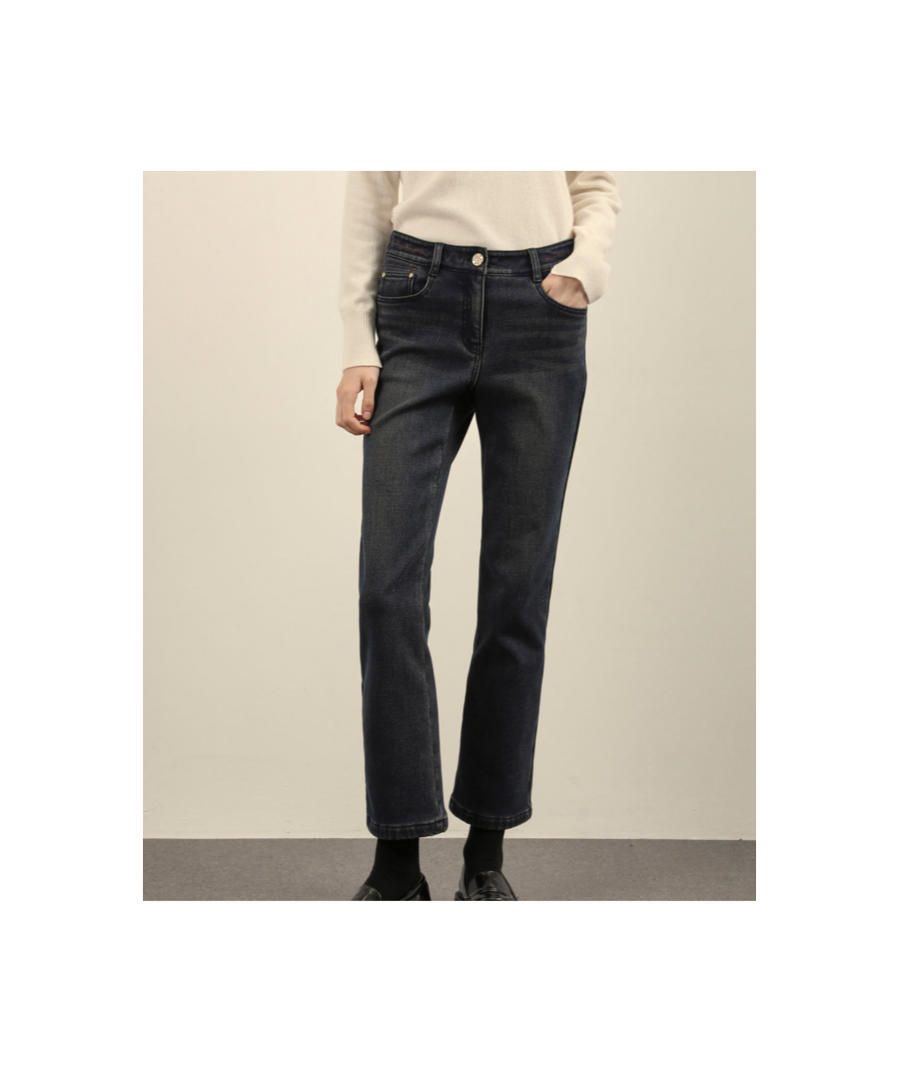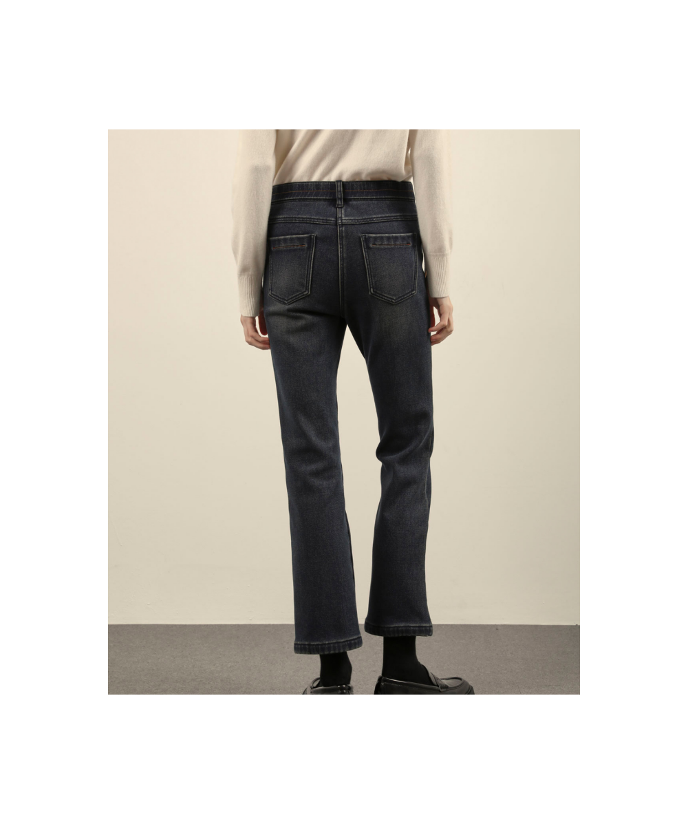 밍크 원단이 본딩되어 따듯하게 착용할수 있는 붓컷 데님팬츠 입니다